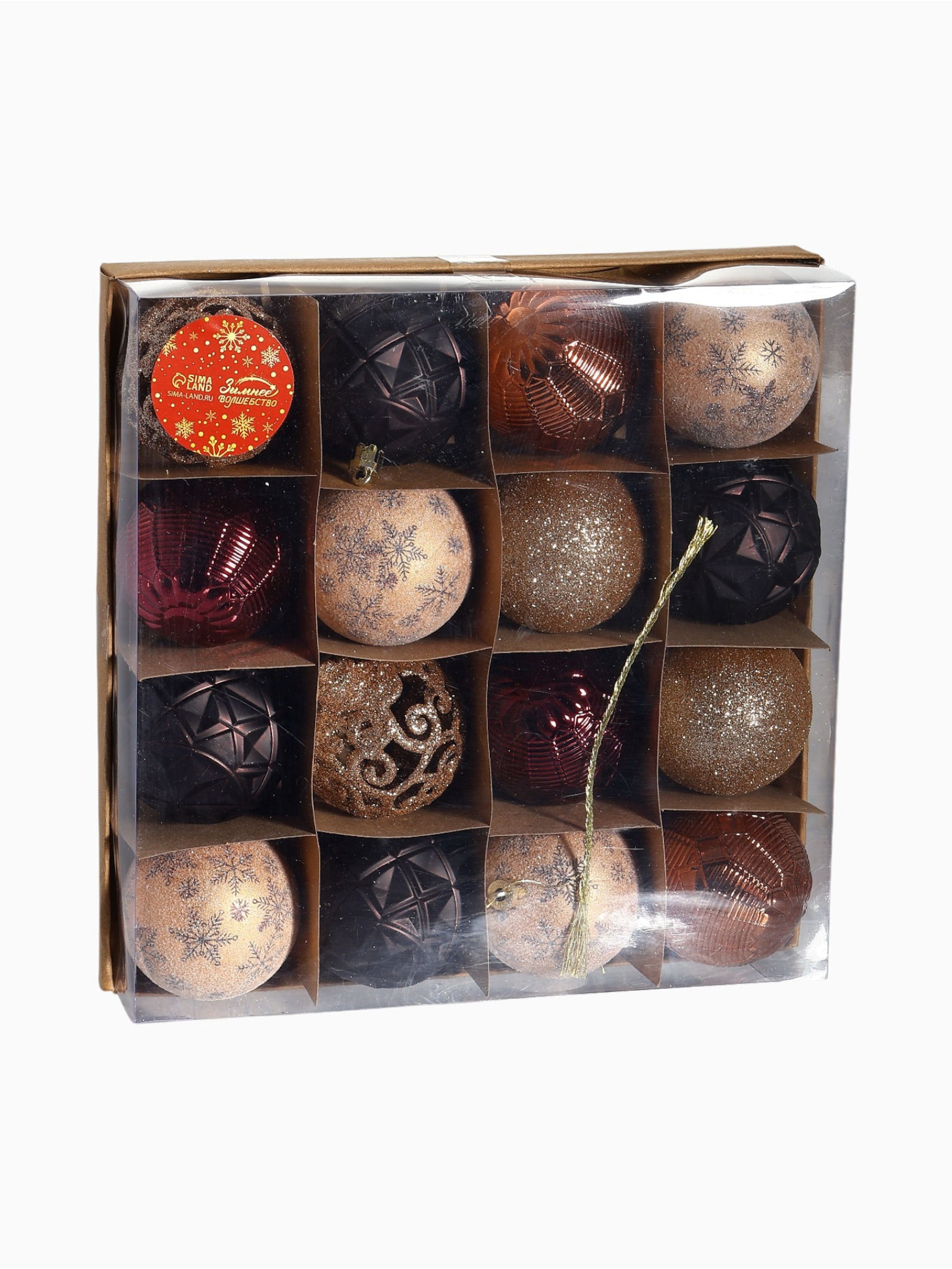 Особенности: Резная, Рельефная, С рисунком Размер упаковки: 23.5 x 6 x 23.5 см. Форма игрушки: Шар Тематика праздника: Новый год Символ года: Нет tnved: 9505109000 Рисунок: Да В наборе, шт.: 16 Цвет: МИКС Набор: Да Диаметр шара, см: 6 Стиль: Датский Набор из 16 ёлочных шаров диаметром 6 см в кофейной цветовой гамме с датским узорчатым дизайном. Пластиковые украшения создают тёплый и уютный акцент в новогоднем декоре, подчёркивая естественность и сдержанность праздничной атмосферы. Особенности