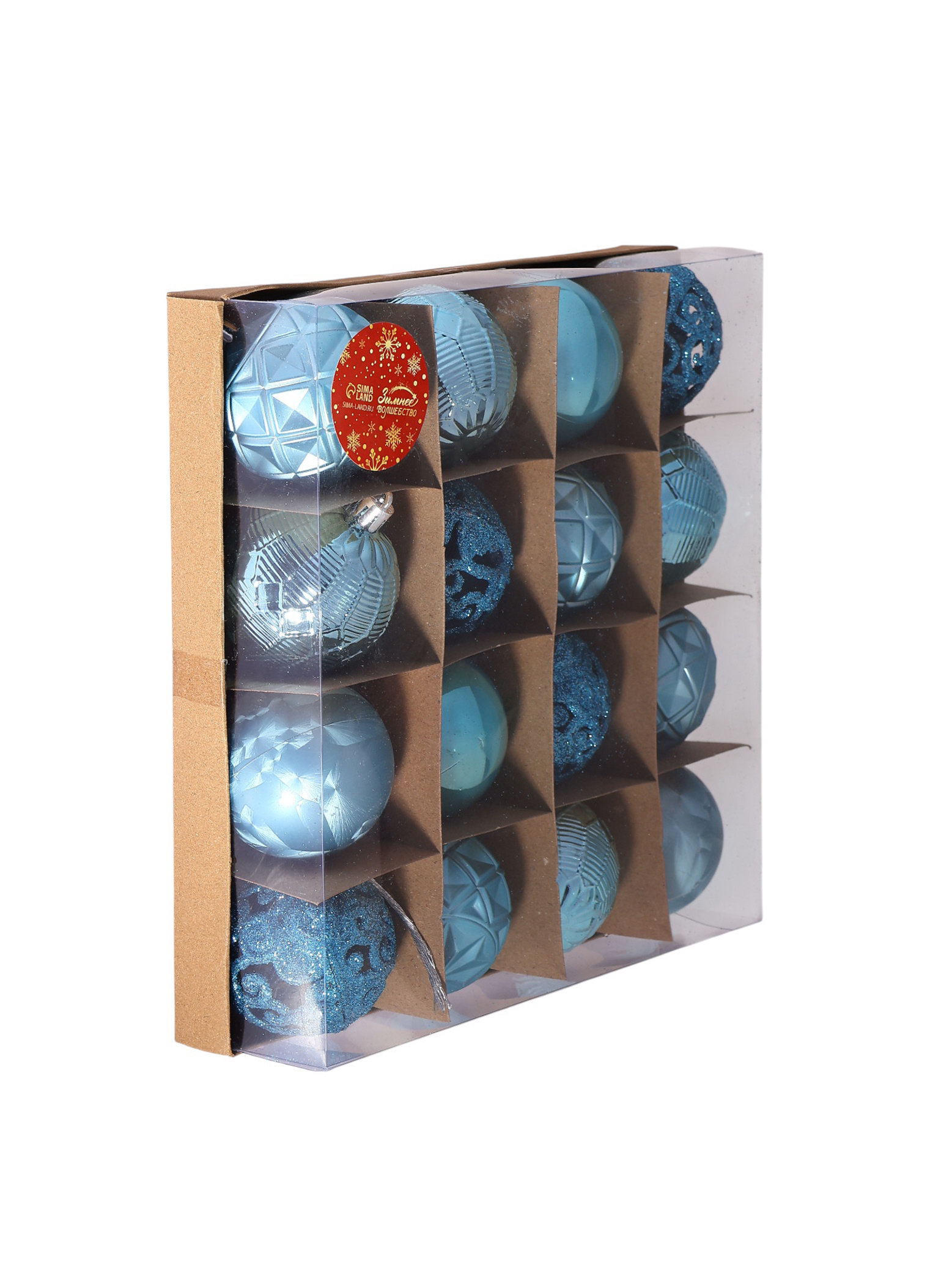 Ёлочные игрушки "Винтаж", шары новогодние, d=6 см, набор 16 шт., голубой, 6x6 см., Зимнее волшебство, Китай