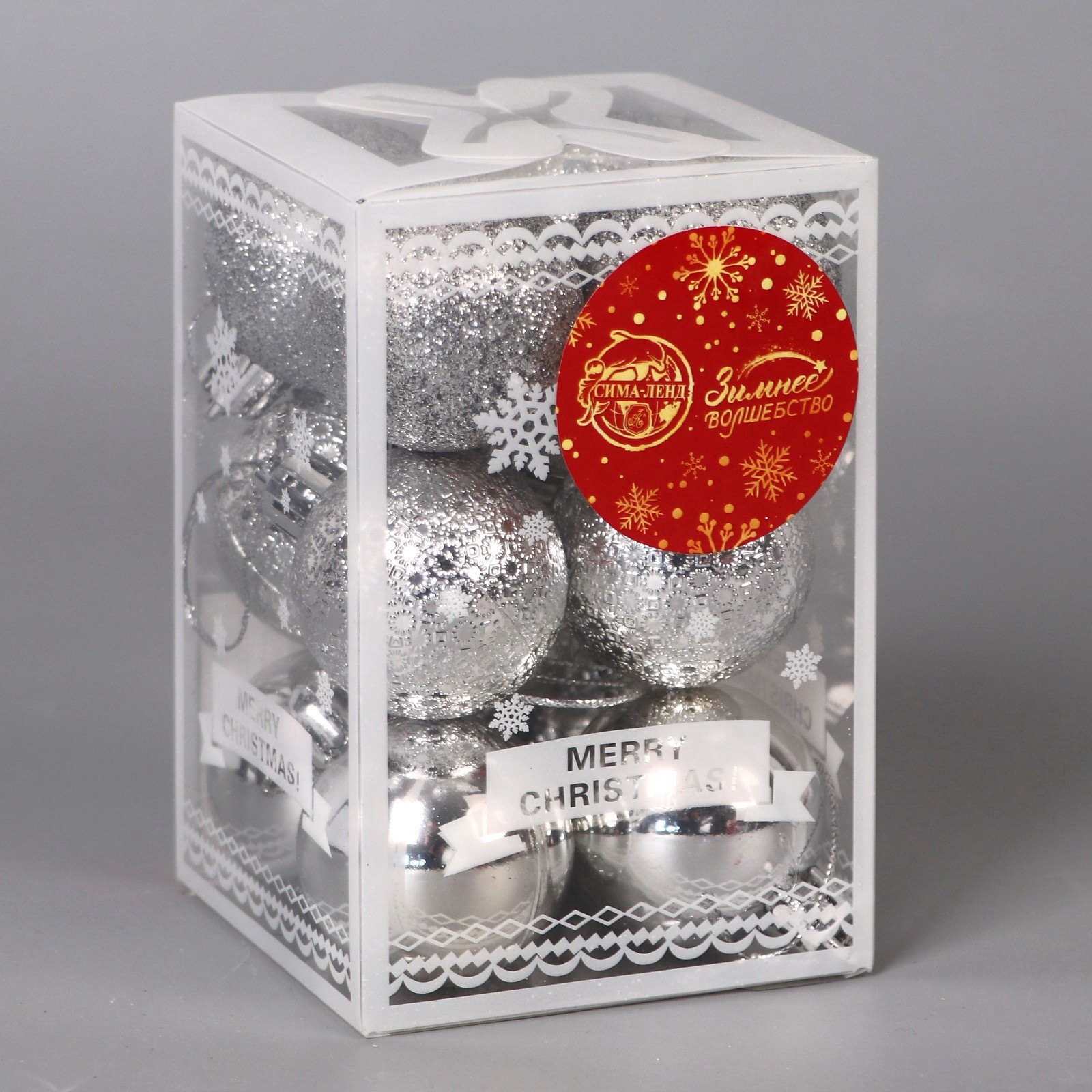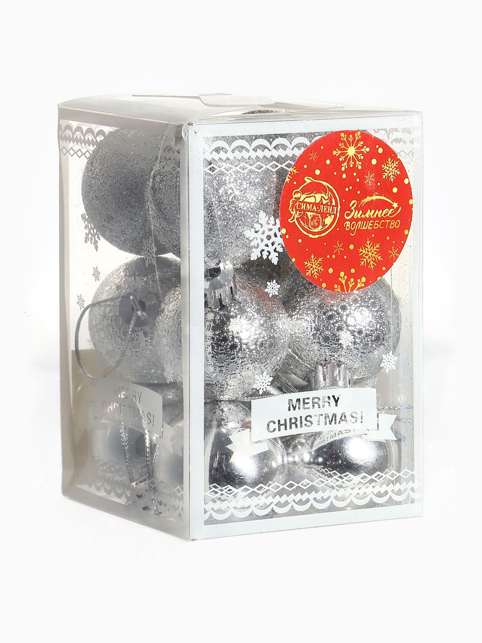 Ёлочные игрушки "Анданте", пластиковые, набор 12 шт., d=4 см, серебристый, 4x4 см., Зимнее волшебство, Китай