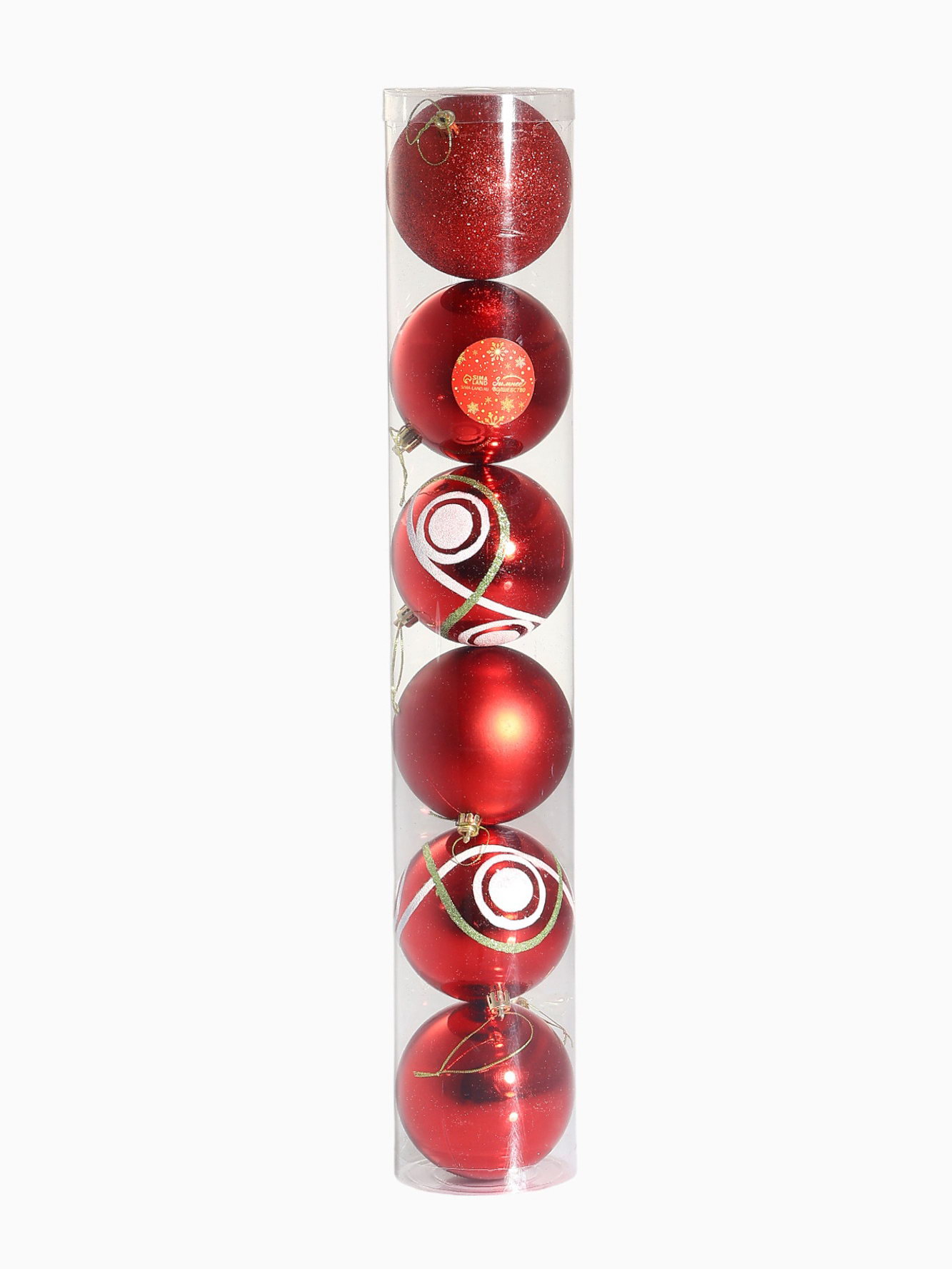 Ёлочные игрушки "Круги ассорти", шары новогодние, набор d=10 см, 6 шт., красный, 10x10 см., Зимнее волшебство, Китай