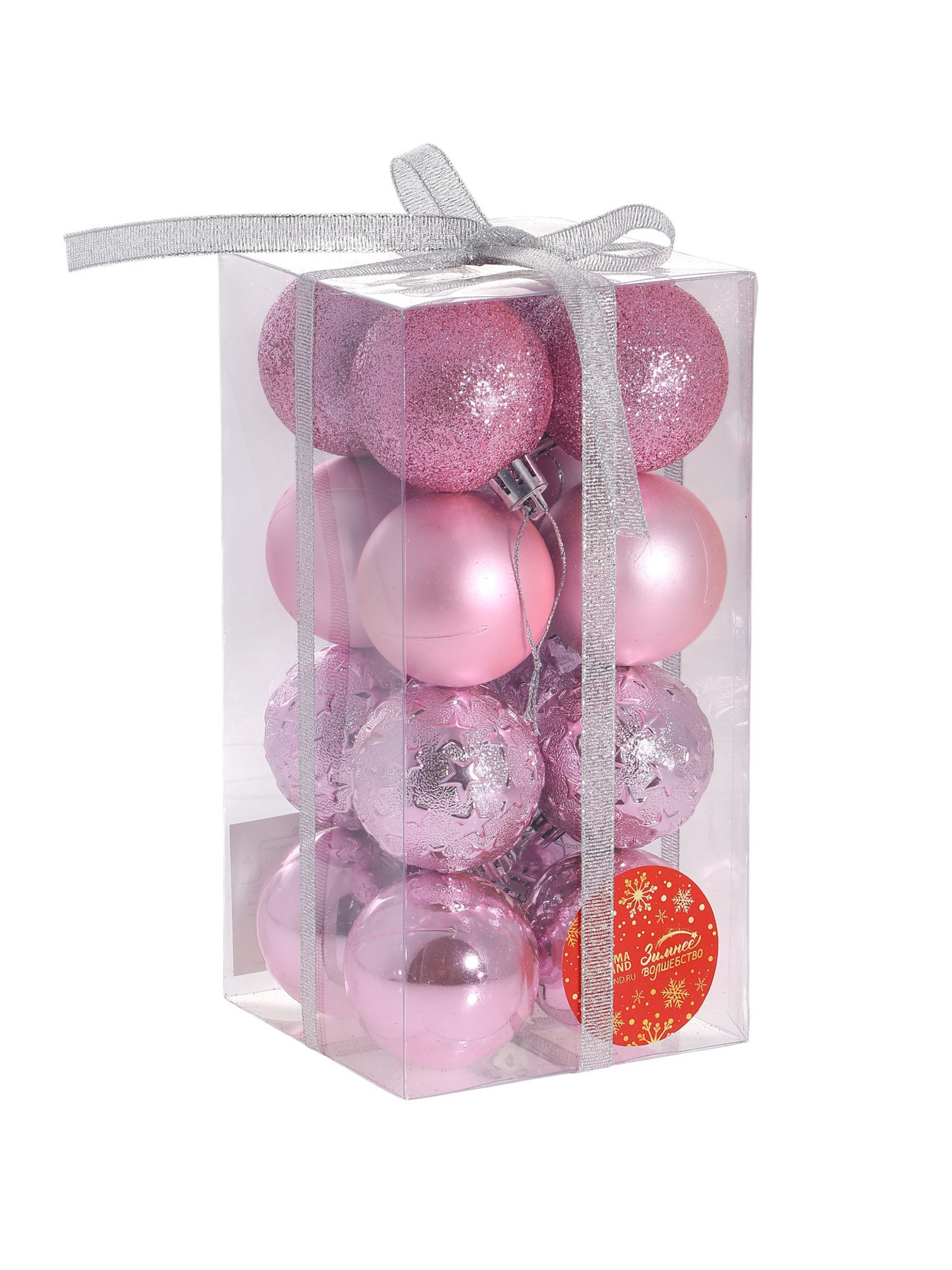 Ёлочные игрушки "Звёздная ночь", шары новогодние, набор 16 шт., d=5 см, розовый, 5x5 см., Зимнее волшебство, Китай