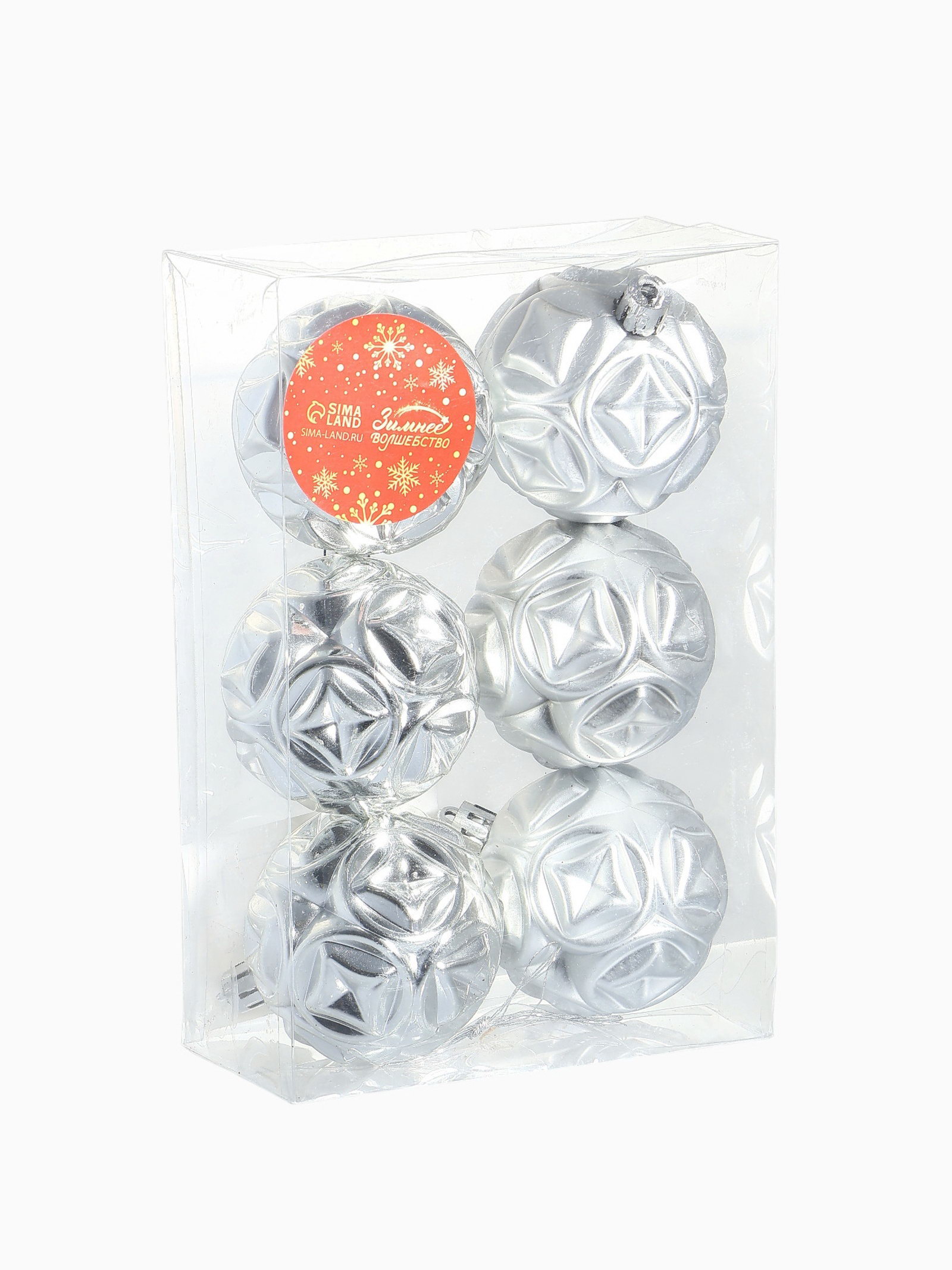 Ёлочные игрушки "Мидас - геометрия", шары новогодние, d=6 см, набор 6 шт., серебро, 6x6 см., Зимнее волшебство, Китай