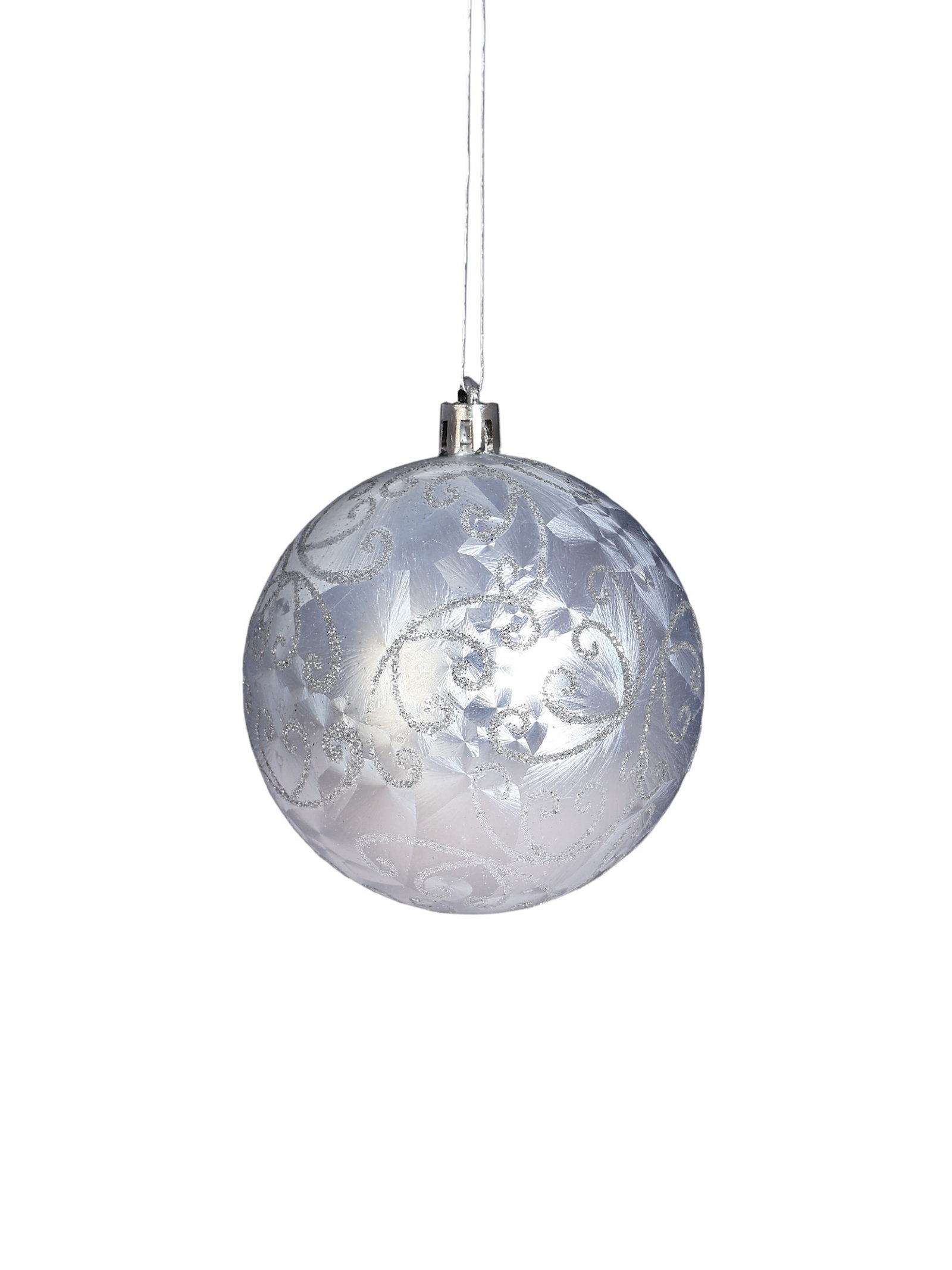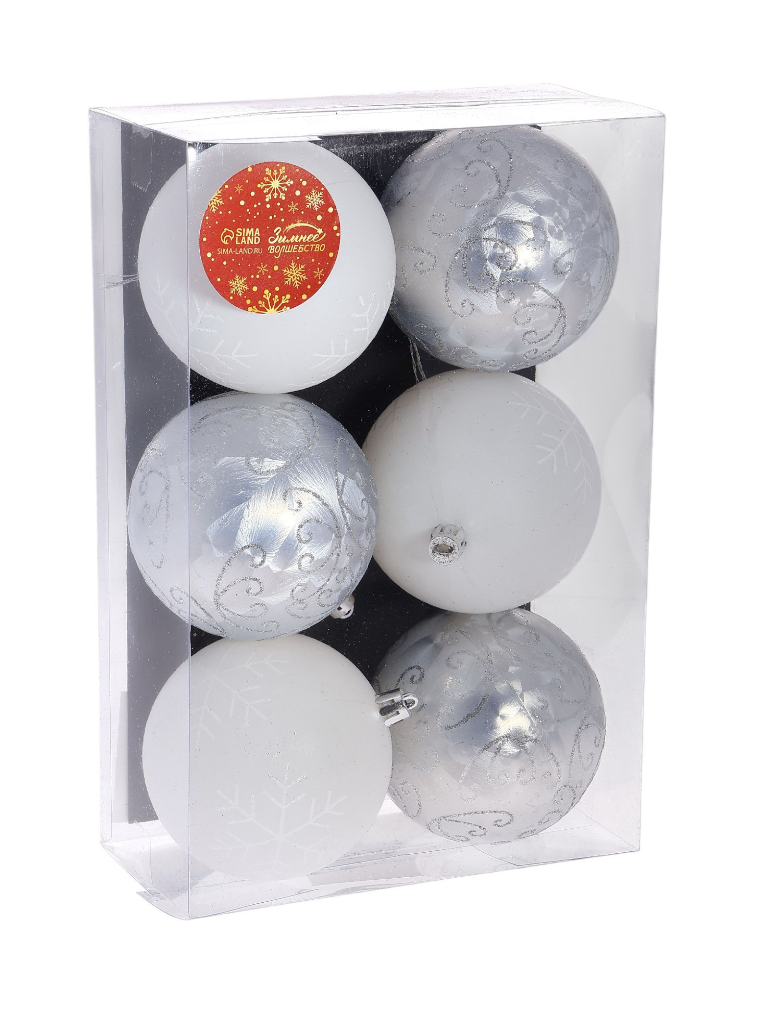 Ёлочные игрушки "Морозные узоры", шары новогодние, d=8 см, набор 6 шт., серебристо-белый, 8x8 см., Зимнее волшебство, Китай