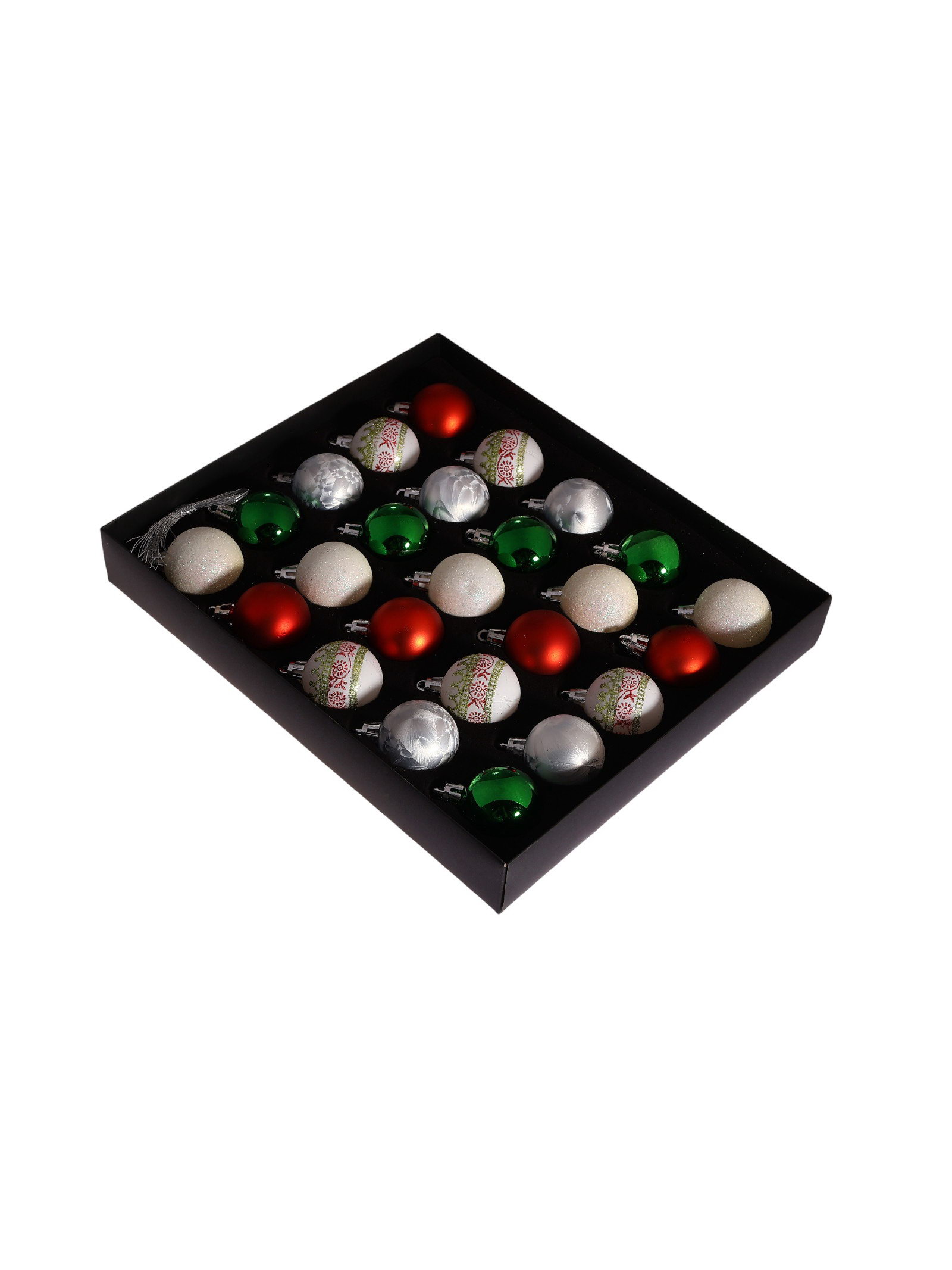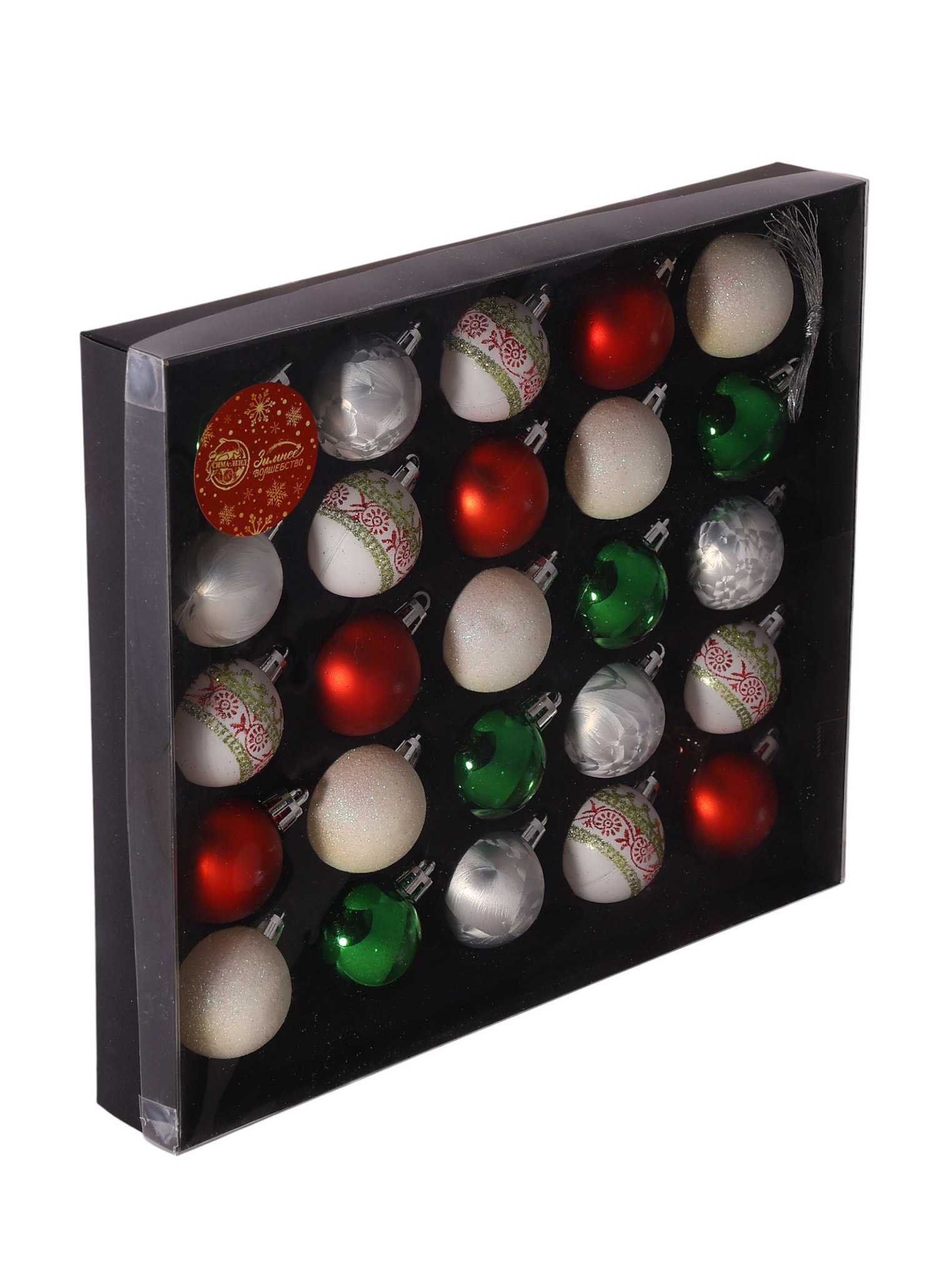 Ёлочные игрушки "Нембус", шары новогодние, набор 25 шт., d=4 см, белый/красный/зелёный, 4x4 см., Зимнее волшебство, Китай