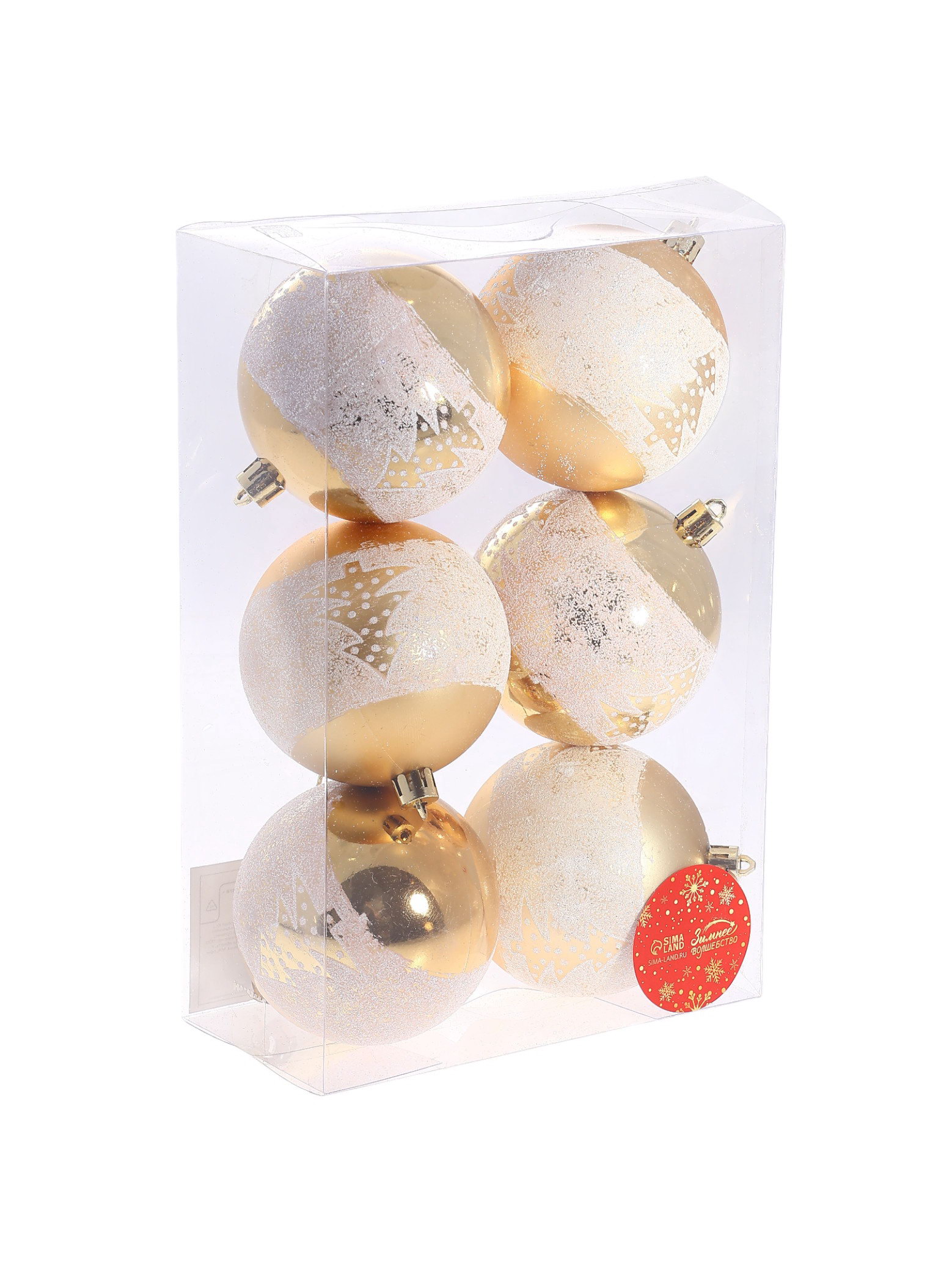 Ёлочные игрушки "Сказочный лес", шары новогодние, набор 6 шт., d=8 см, золотистый, 8x8 см., Зимнее волшебство, Китай