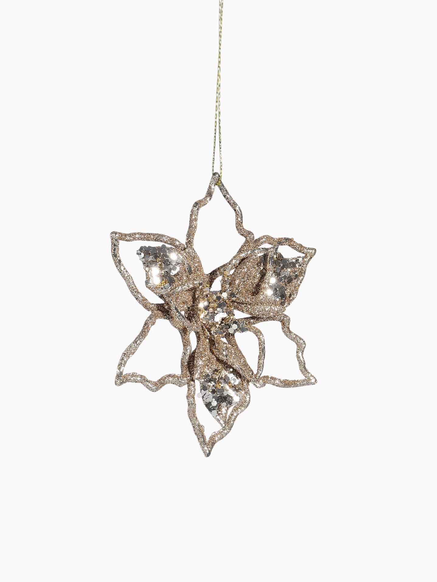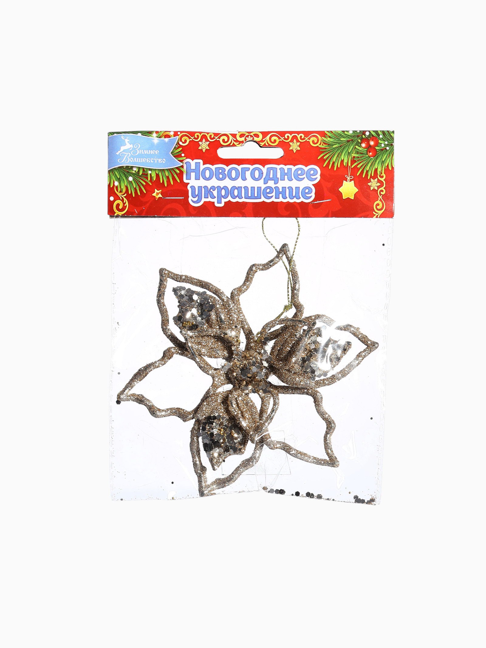 Ёлочная игрушка "Зимнее волшебство. Сияющая глазурь - цветок" пластик, 12.5x12.5 см, золото, 12.5x12.5 см., Зимнее волшебство, Китай