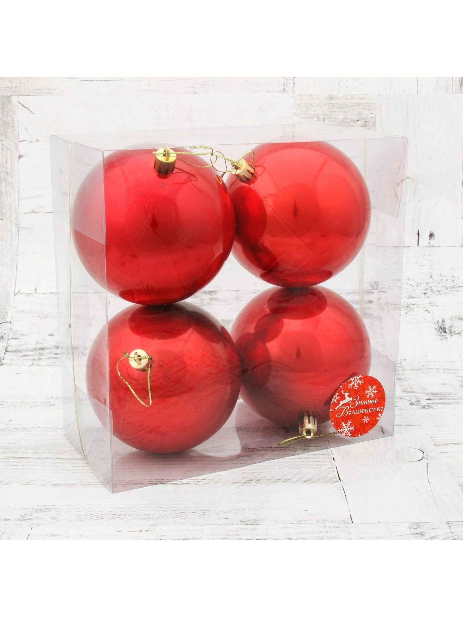 Ёлочные игрушки "Глянец", шары новогодние, d=10 см, набор 4 шт., красный, 10x10 см., Зимнее волшебство, Китай