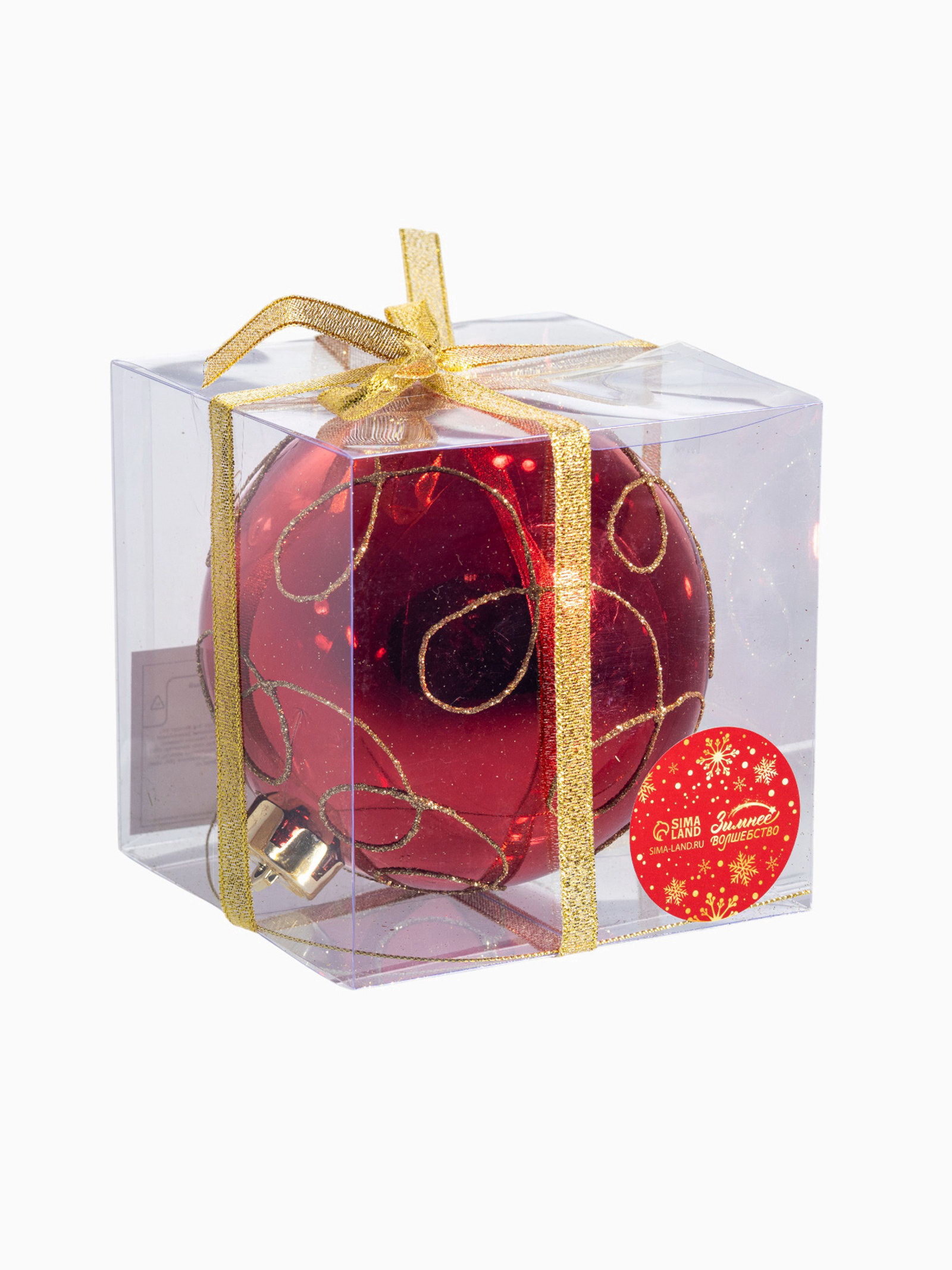 Ёлочный шар "Золотые завитки", новогодний, d=12 см, красный, 12x12 см., Зимнее волшебство, Китай