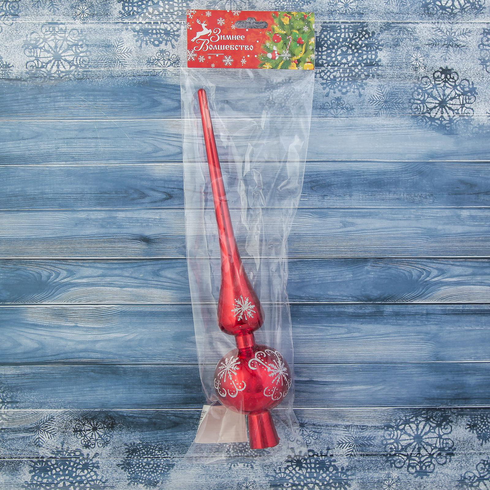 Верхушка на ёлку "Узорная снежинка" 28 см, красный, 6x28 см., Зимнее волшебство, Китай