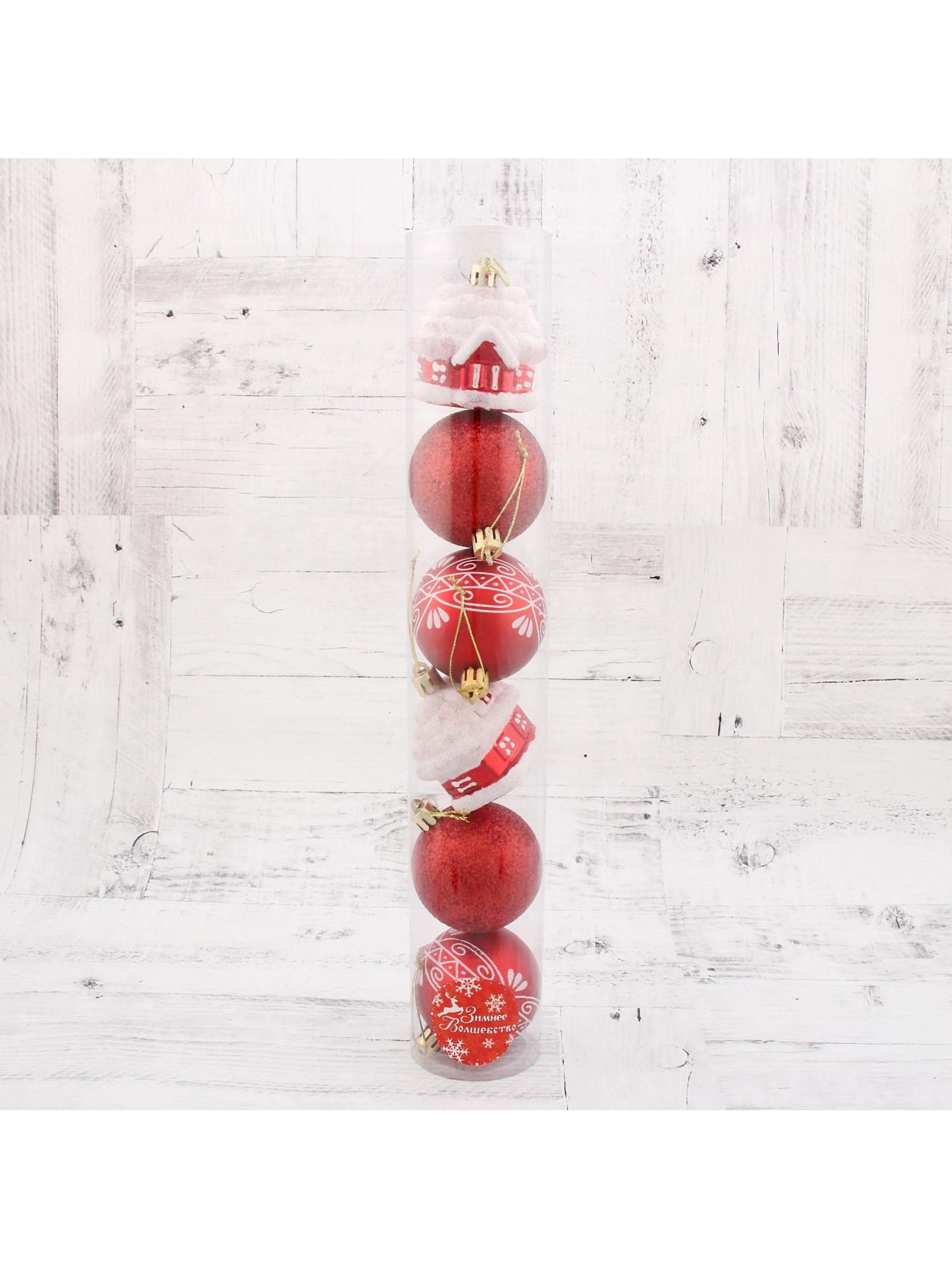 Стиль: Новогоднее барокко, Скандинавский, Советский, Фьюжн Размер упаковки: 6 x 36 x 6 см. Набор: Да Цвет: Красный Форма игрушки: Набор Тематика праздника: Новый год Символ года: Нет Символ года: Нет tnved: 9505109000 Рисунок: Да Особенности: С рисунком В наборе, шт.: 6 Диаметр шара, см: 6 Новогодние игрушки красного цвета, 6 см в диаметре набор из 4 шаров и 2 домиков. Это яркое решение для праздничного украшения ёлки, сочетающее классическую форму с необычными элементами. Насыщенный оттенок и разнообразие форм добавляют образу ёлки нарядности и зимнего тепла. Преимущества
