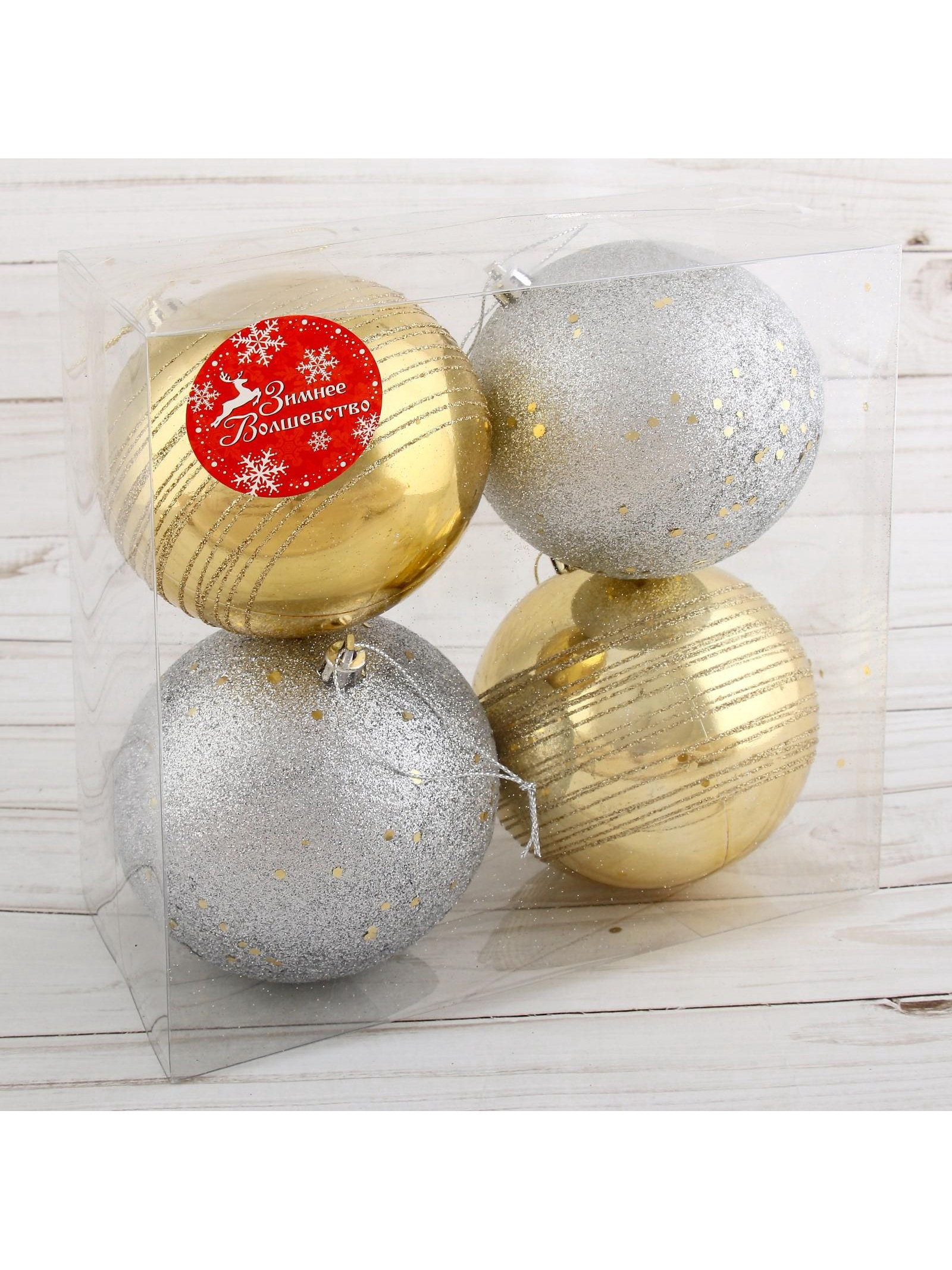 Ёлочные игрушки "Айола", шары новогодние, d=10 см, набор 4 шт., золотисто-серебристый, 10x10 см., Зимнее волшебство, Китай