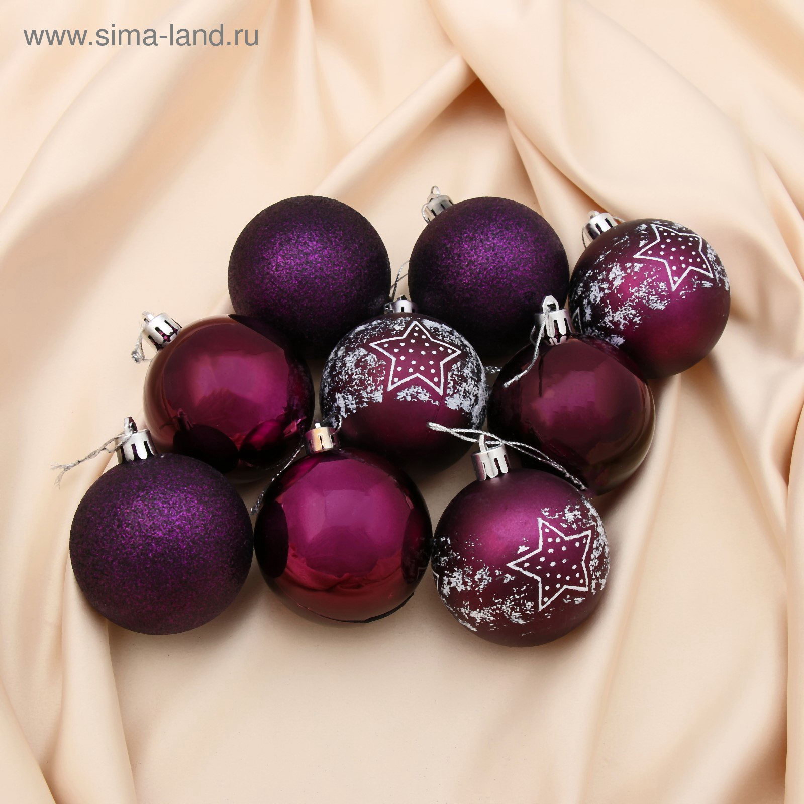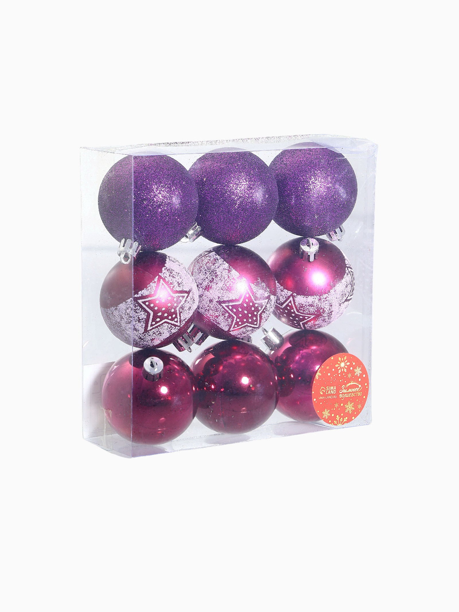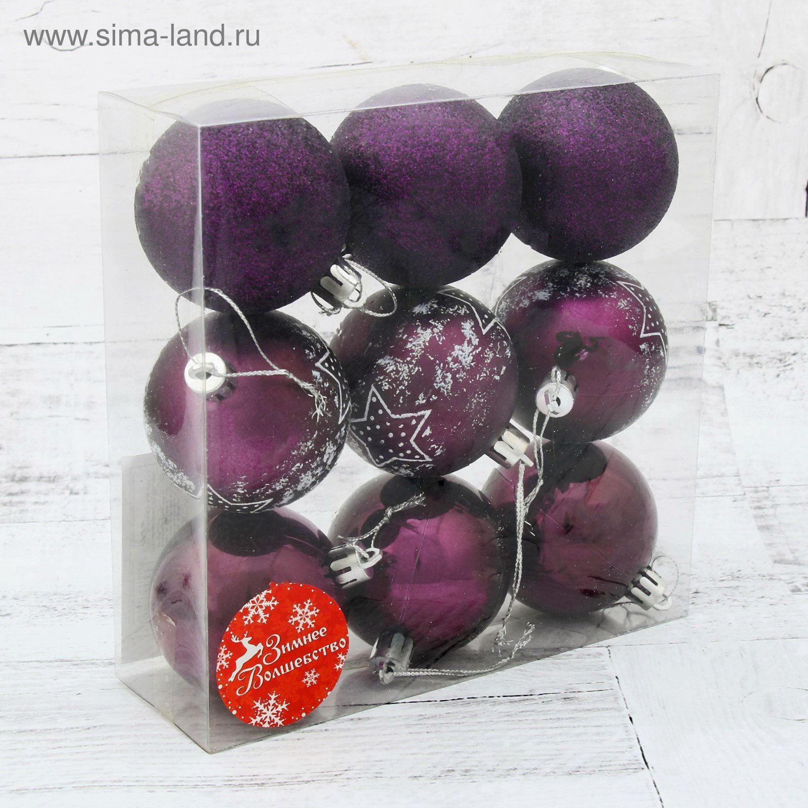 Ёлочные игрушки "Звёздочка", шары новогодние, d=6 см, набор 9 шт., фиолетовый, 6x6 см., Зимнее волшебство, Китай