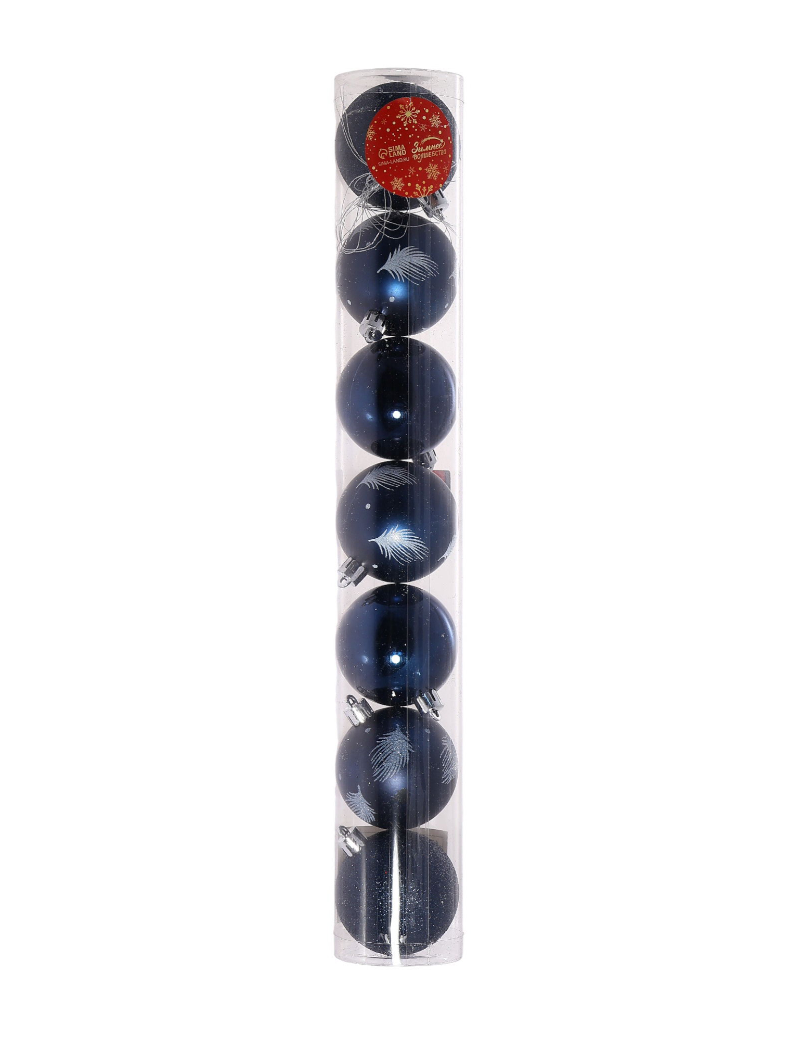 Ёлочные игрушки "Воздушные перья", шары новогодние, d=6 см, набор 7 шт., синий, 6x6 см., Зимнее волшебство, Китай