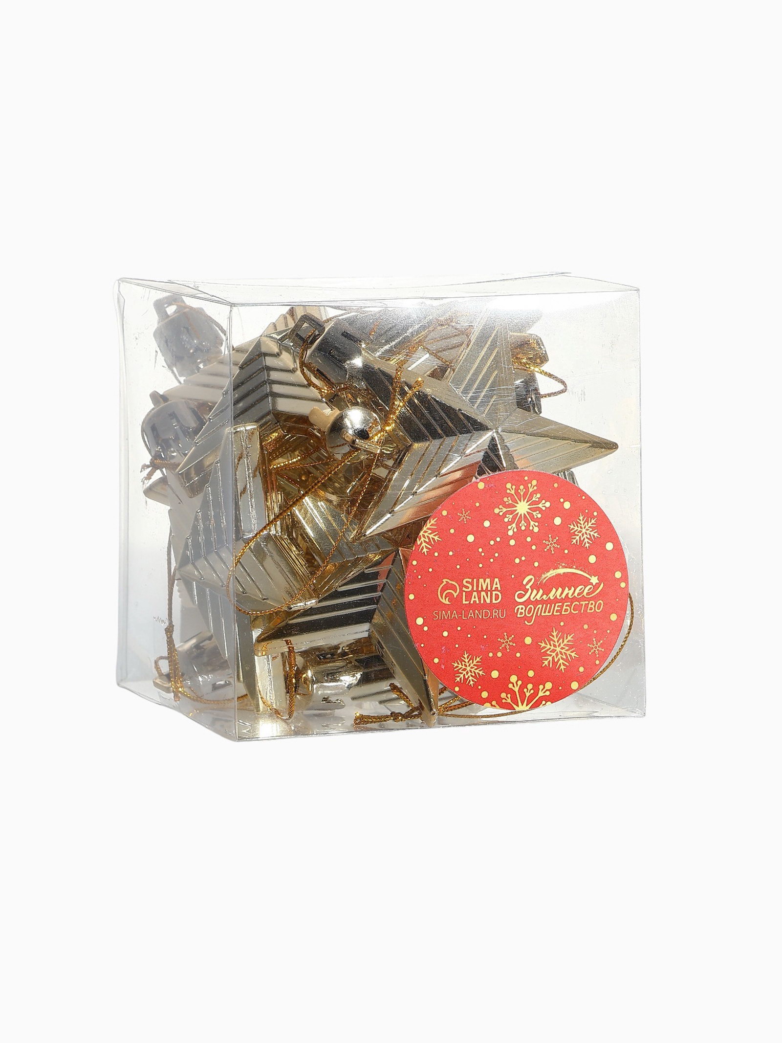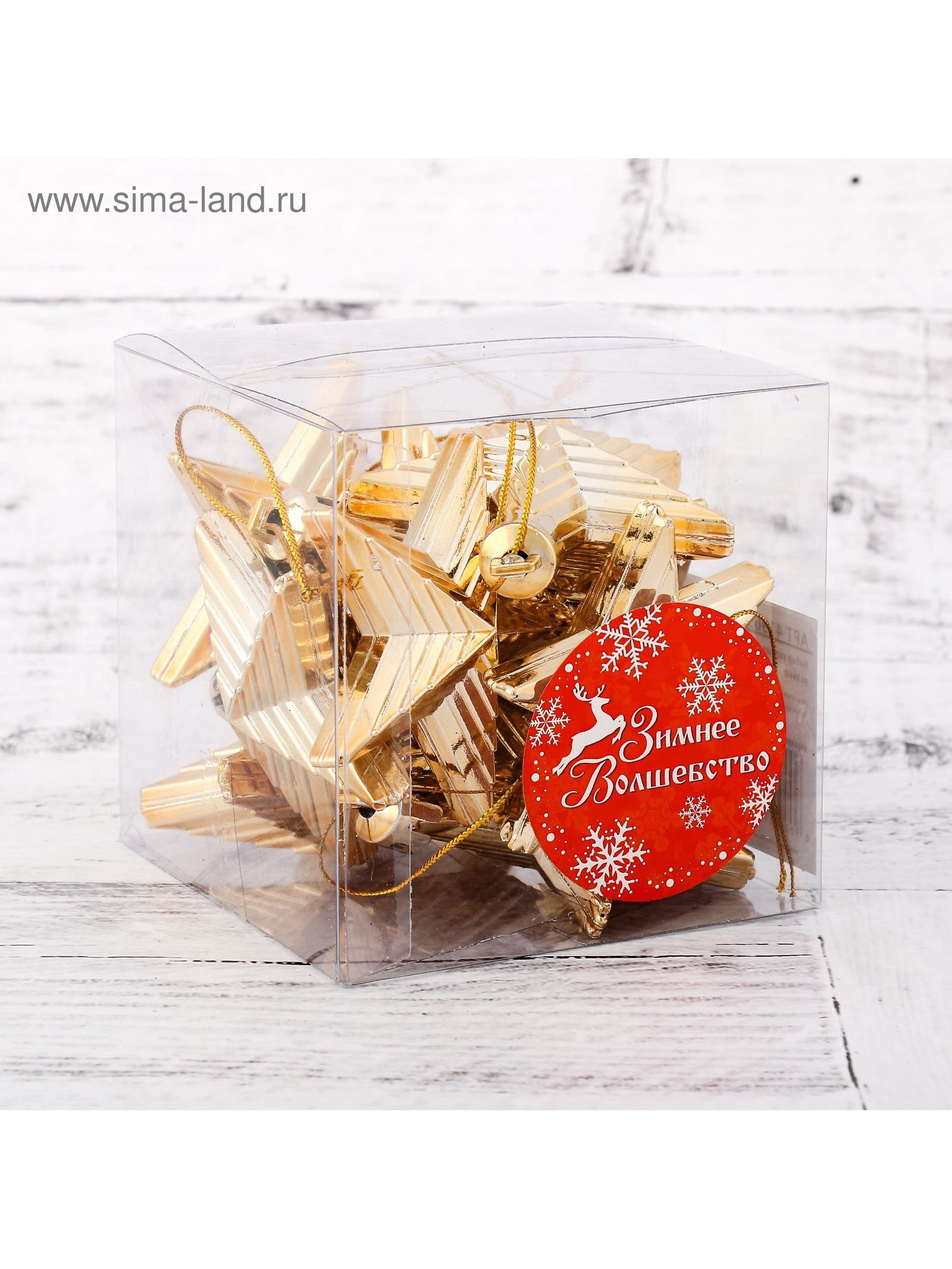 Ёлочные игрушки 10 шт. "Зимнее волшебство. Рельефные звёзды" пластик, 6 см, золото, 8.5x8.5x8 см., Зимнее волшебство, Китай