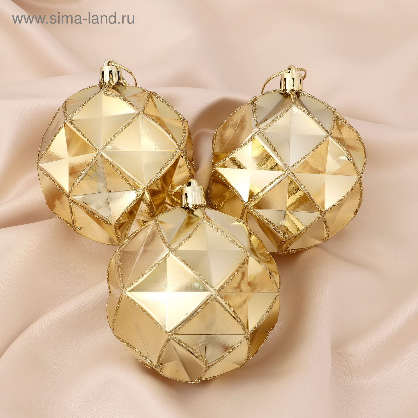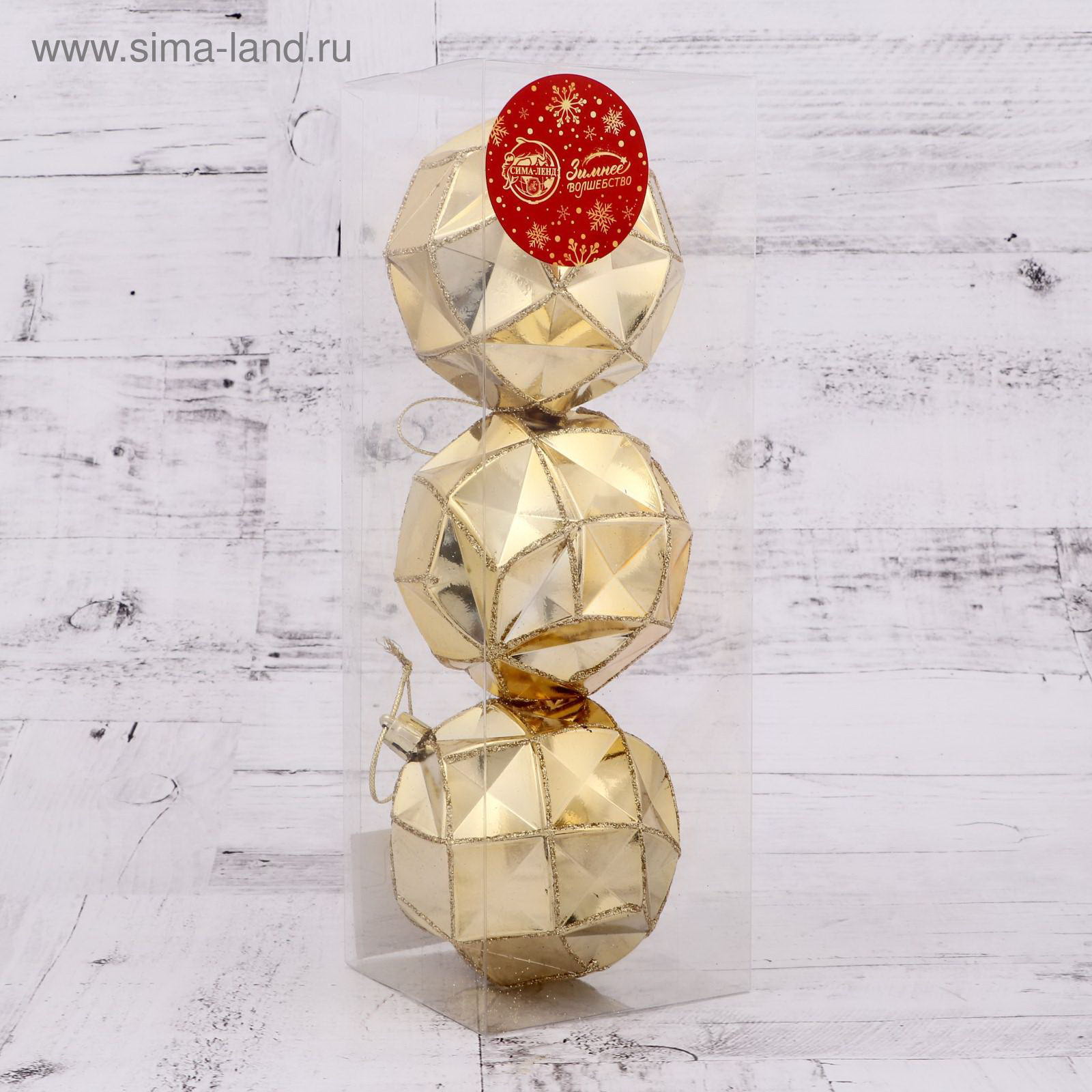 Ёлочные игрушки "Геометрия граней", шары новогодние, d=8 см, набор 3 шт., золото, МИКС, 8x8 см., Зимнее волшебство, Китай