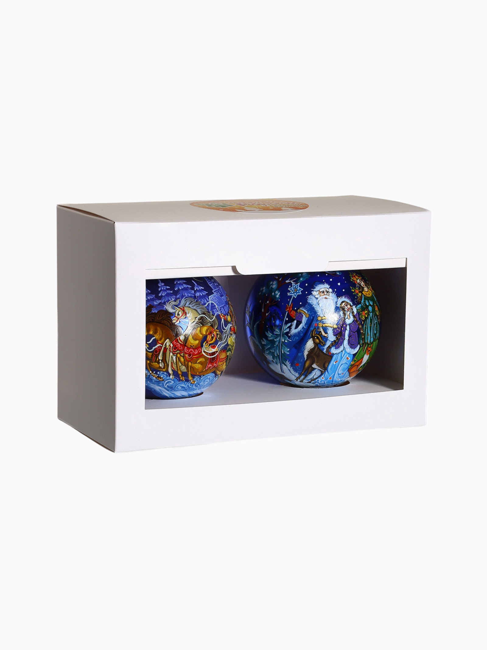 Форма игрушки: Набор, Шар Стиль: Советский, Фьюжн Размер упаковки: 11 x 13 x 22 см. tnved: 9505101000 Символ года: Нет Цвет: Разноцветный Диаметр шара, см: 10 Набор: Да В наборе, шт.: 2 Температурное ограничение: Нет Тематика праздника: Новый год Особенности: С рисунком Двойка стеклянных шаров "Зимняя сказка" привносит в новогодний декор лёгкость и цветовую гармонию. Каждый шар с рисунком отражает сочетание советского наследия и фьюжн-стиля, создавая атмосферу праздника и уюта. Особенности