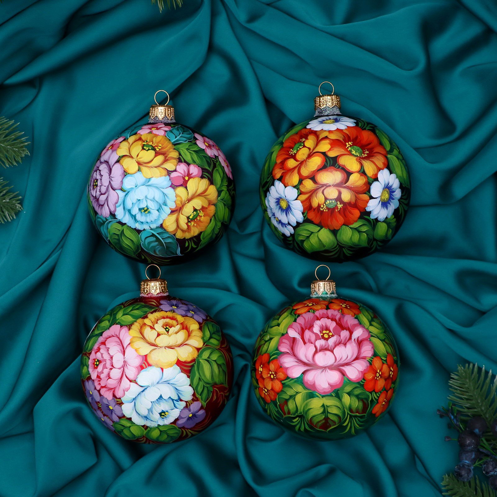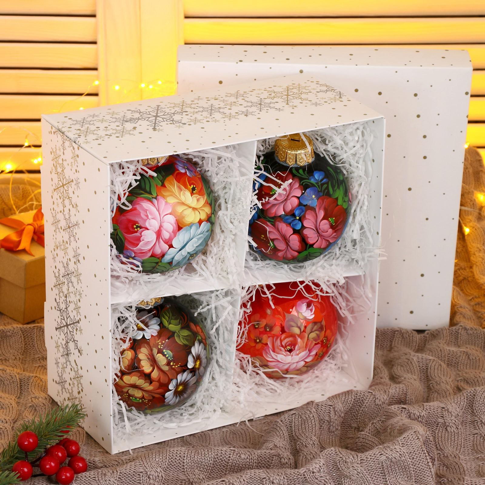 Набор из 4-х ёлочных шаров d=10 см "Неповторимый букет", Россия