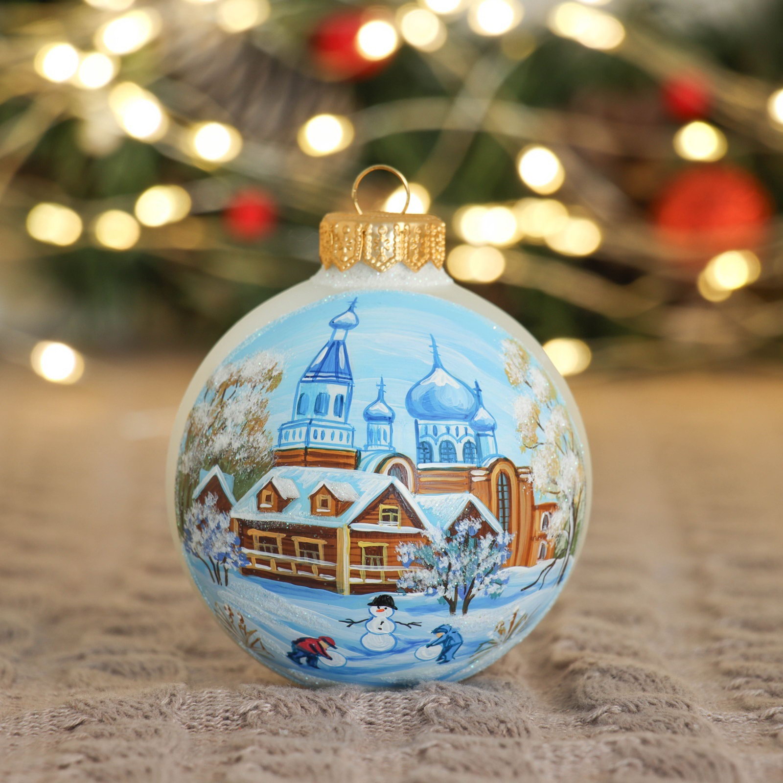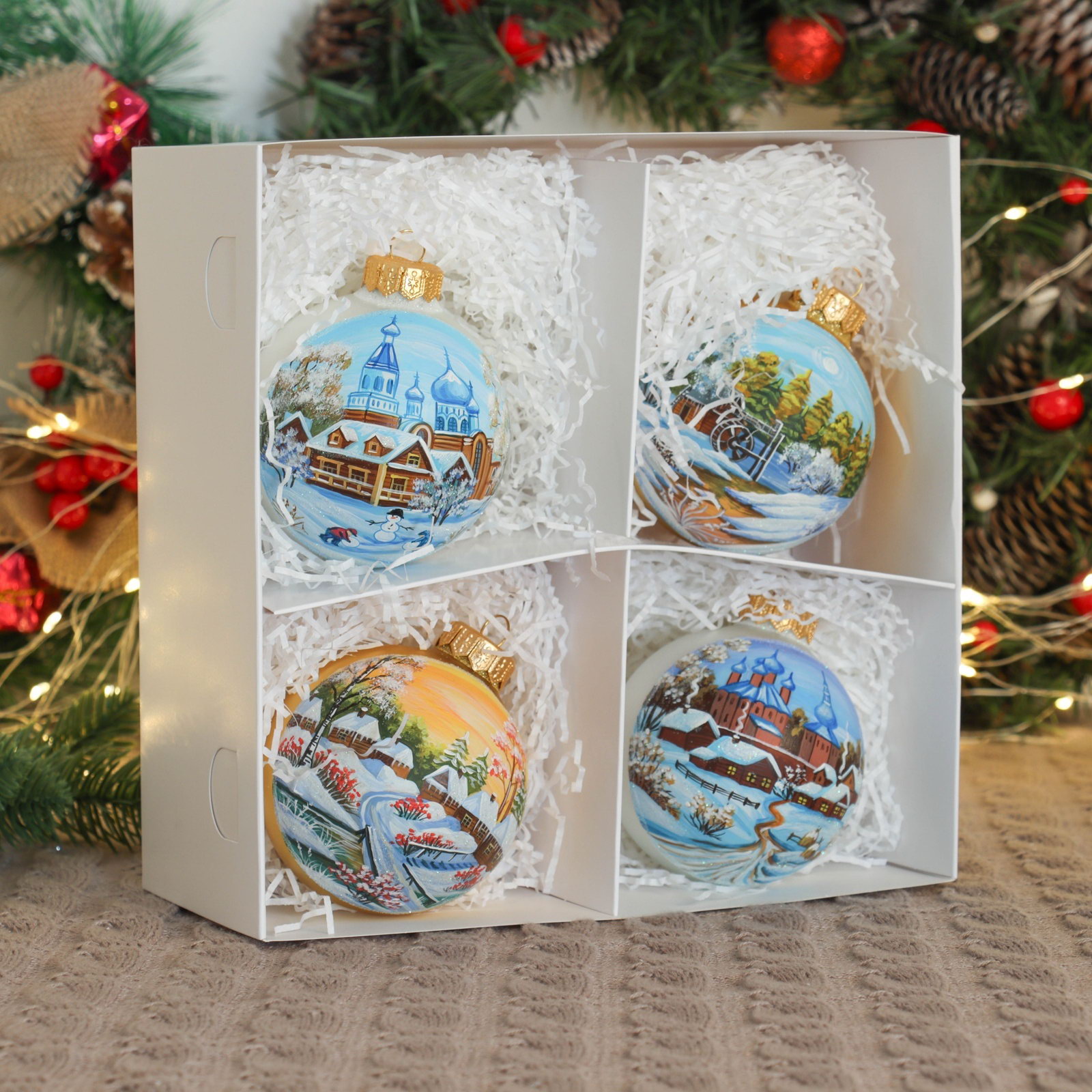 Набор из 4-х ёлочных шаров d=8 см "На краю света", Россия