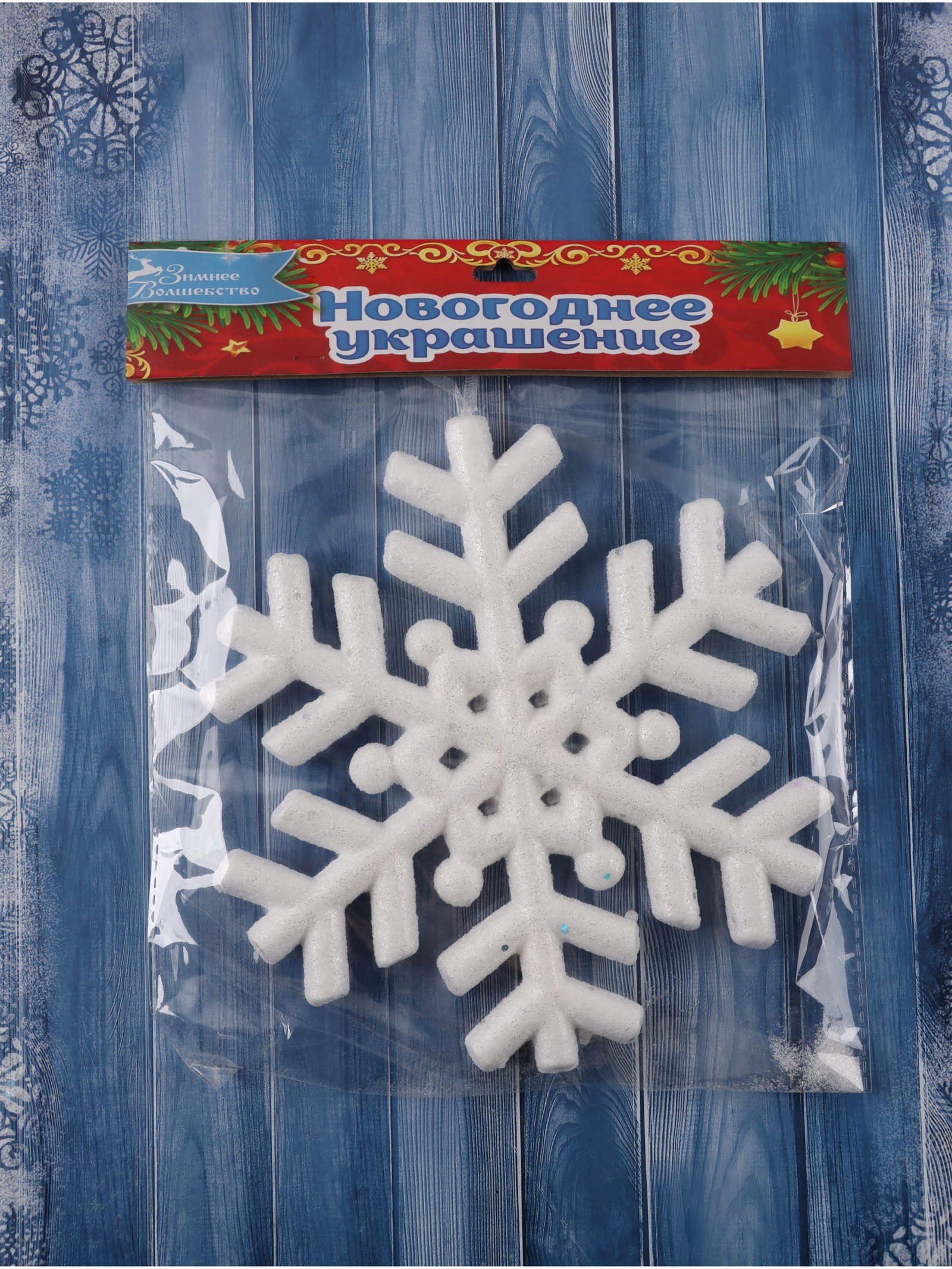 Ёлочная игрушка "Зимнее волшебство. Снежинка белый с блёстками", d=20 см, белый, 19.5x20 см., Зимнее волшебство, Китай