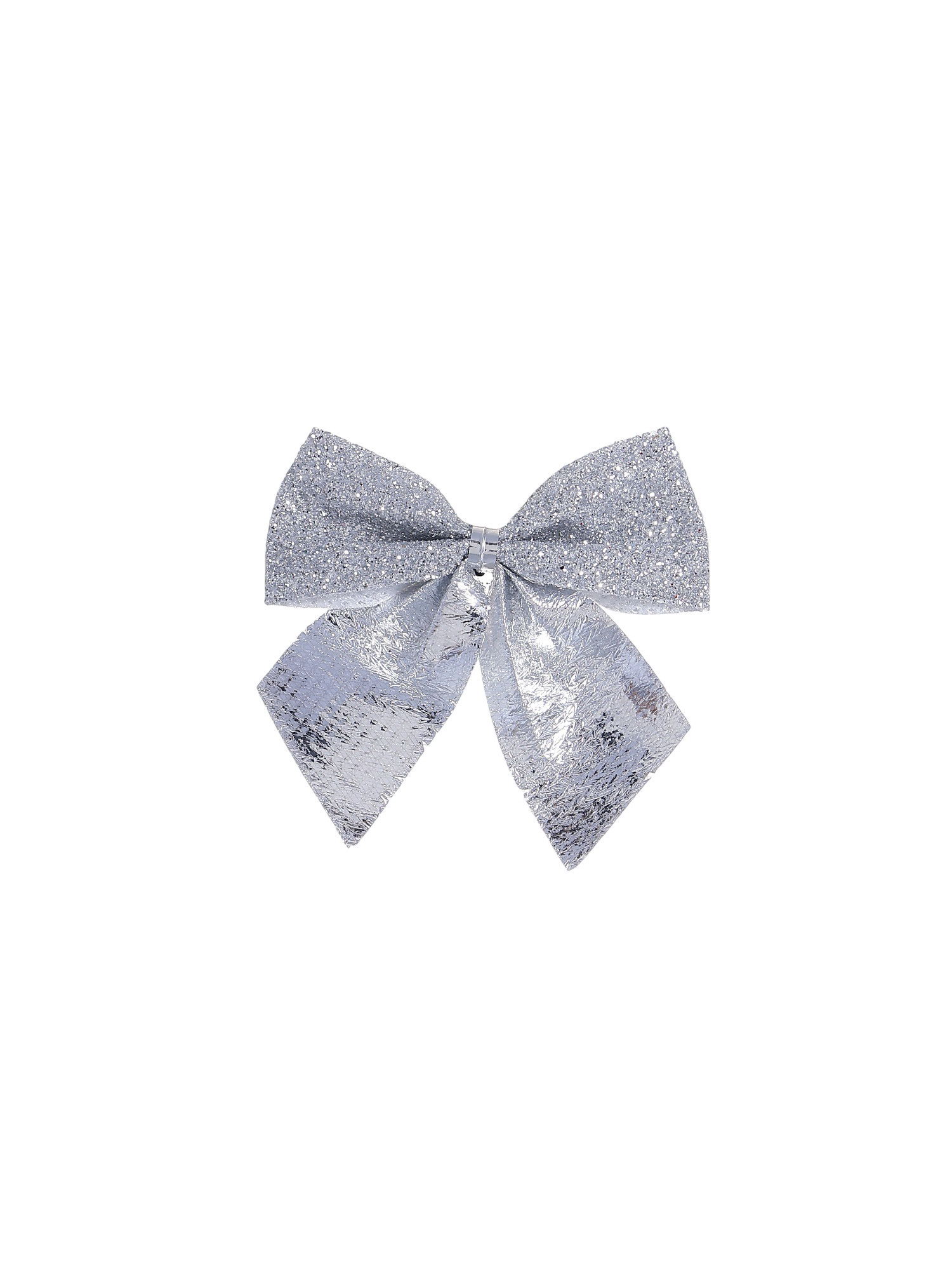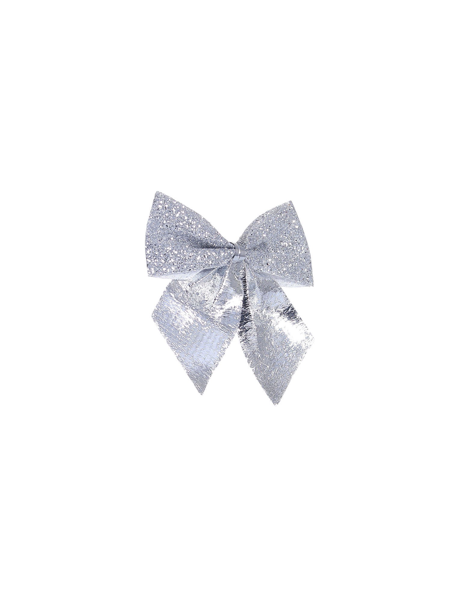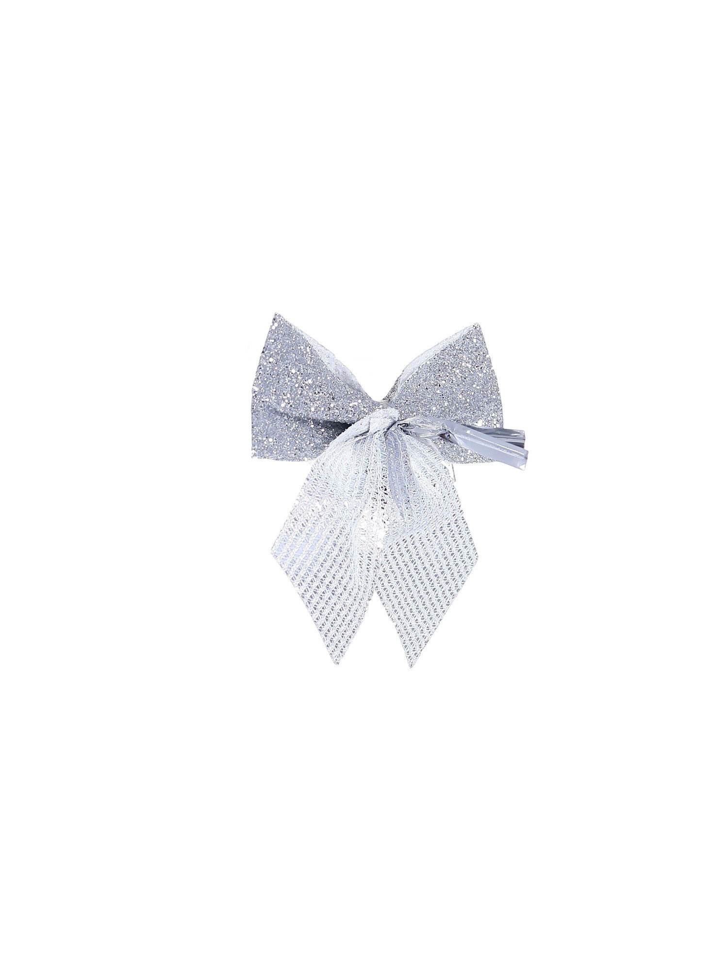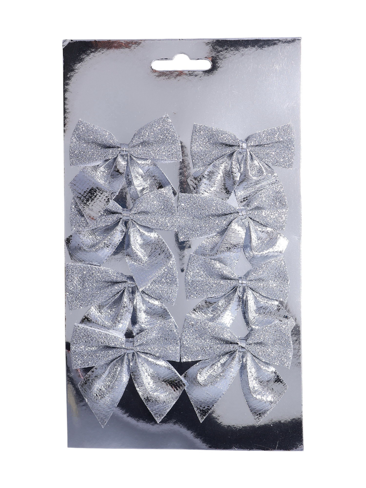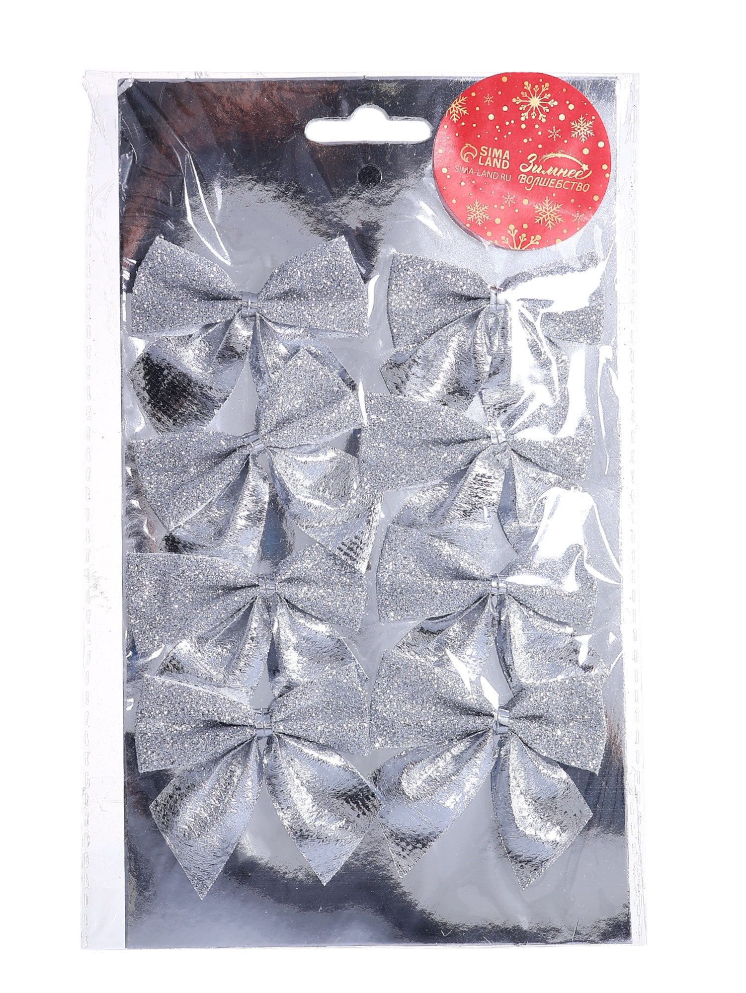 Ёлочные игрушки 8 шт., "Зимнее волшебство. Бантик с блеском" пластик, 4.5x5.5 см, серебро, 5.5x4.5 см., Зимнее волшебство, Китай