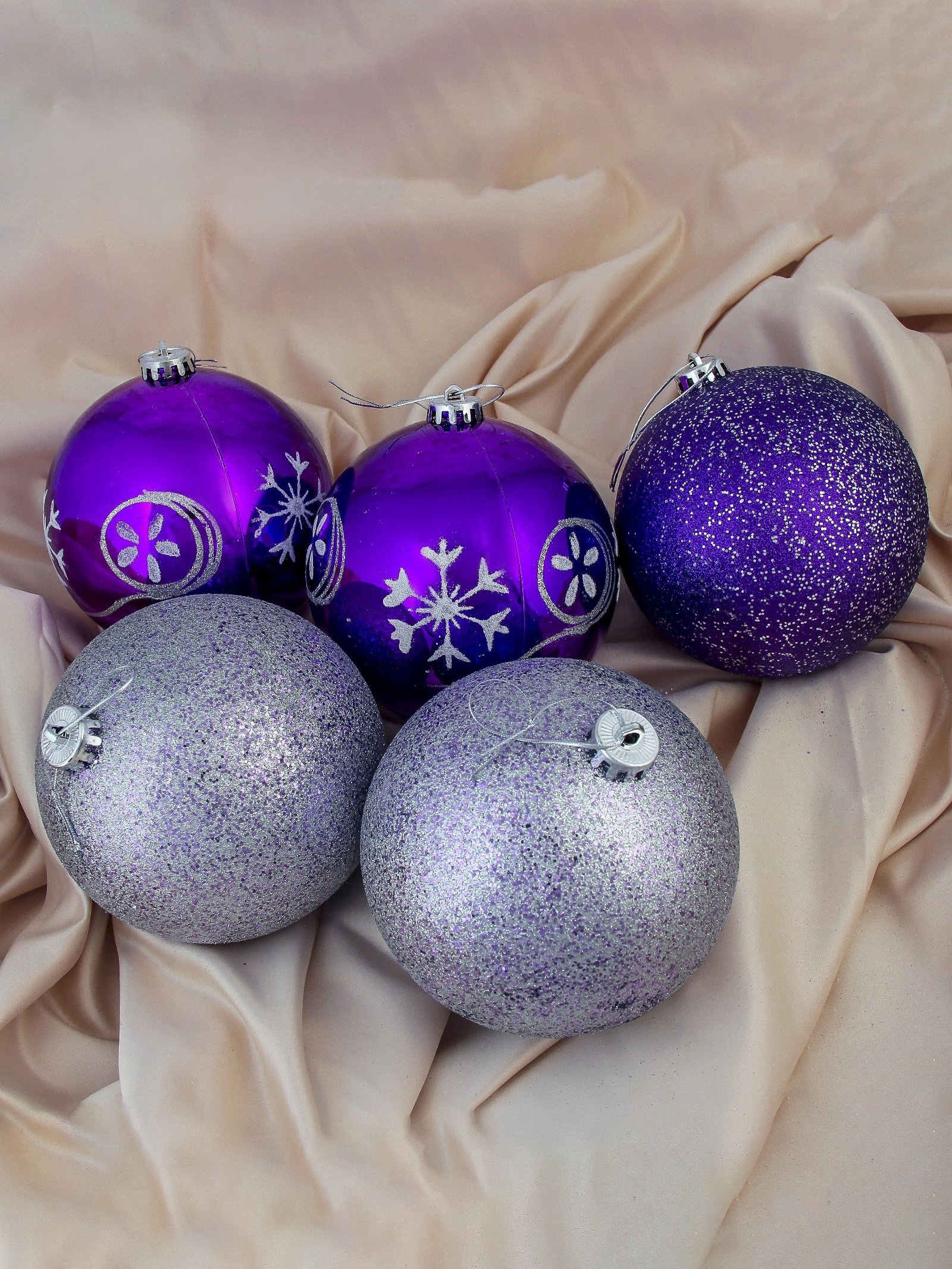 Ёлочные игрушки "Барбара", шары новогодние, d=14 см, набор 5 шт., серебристо-фиолетовый, 14x14x14 см., Зимнее волшебство, Китай