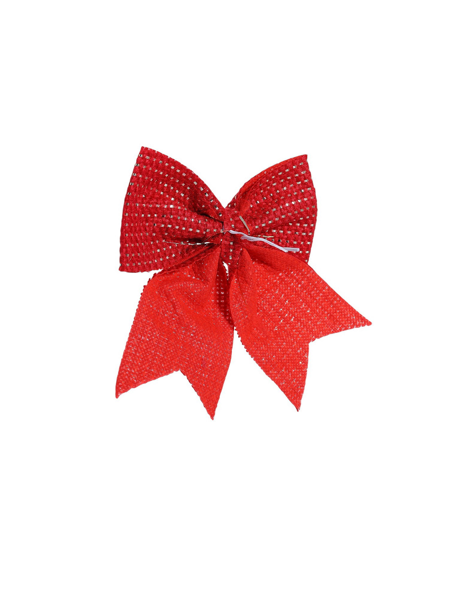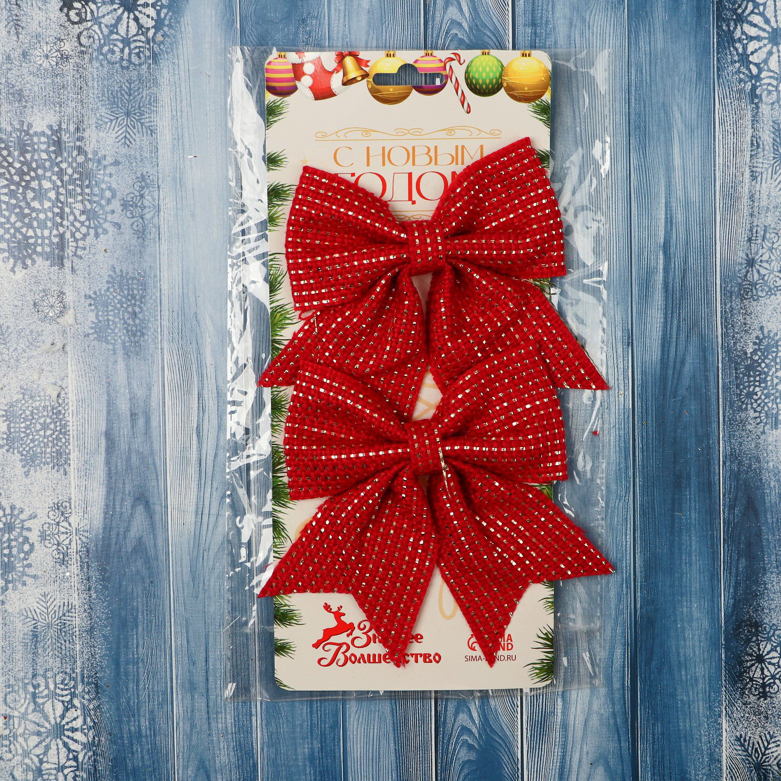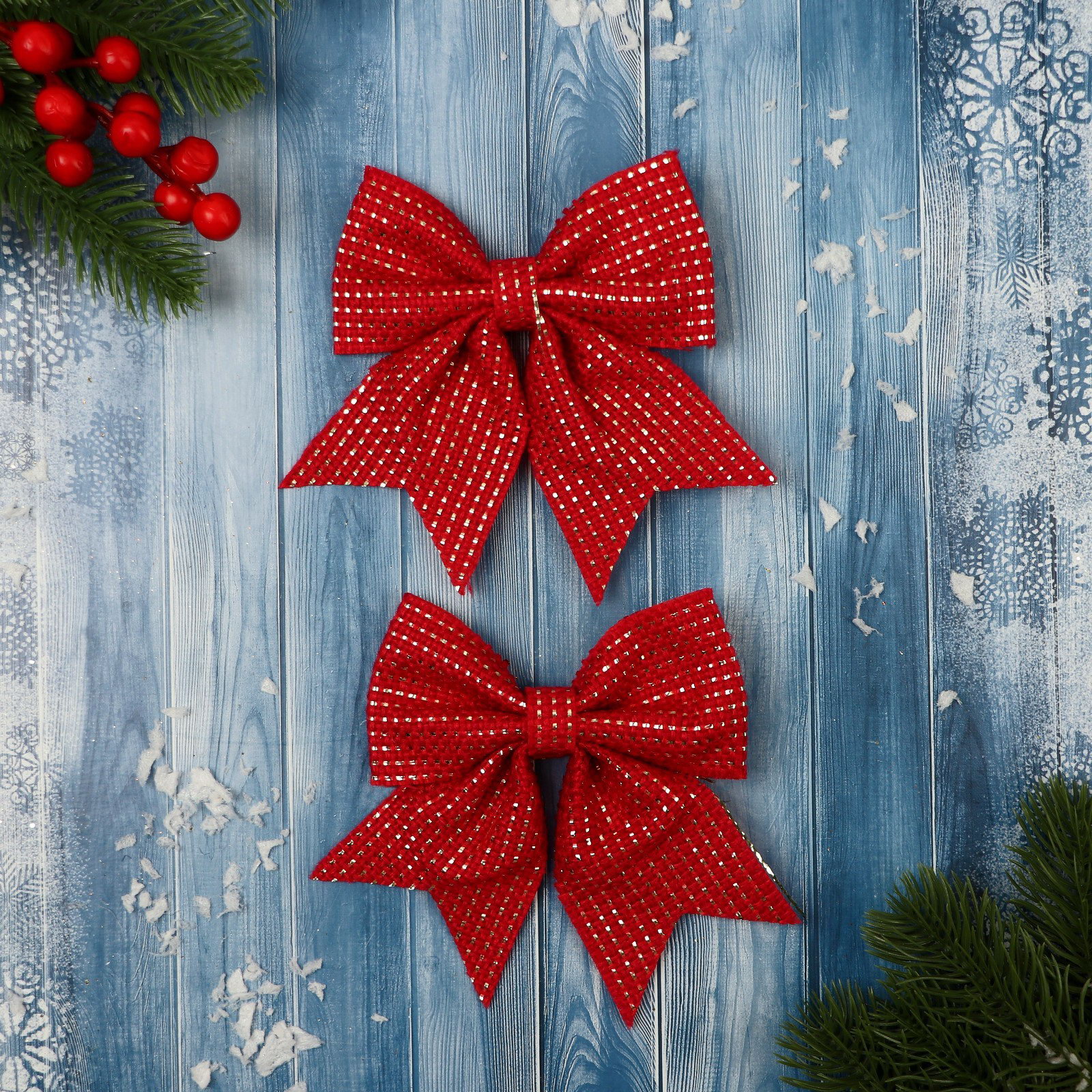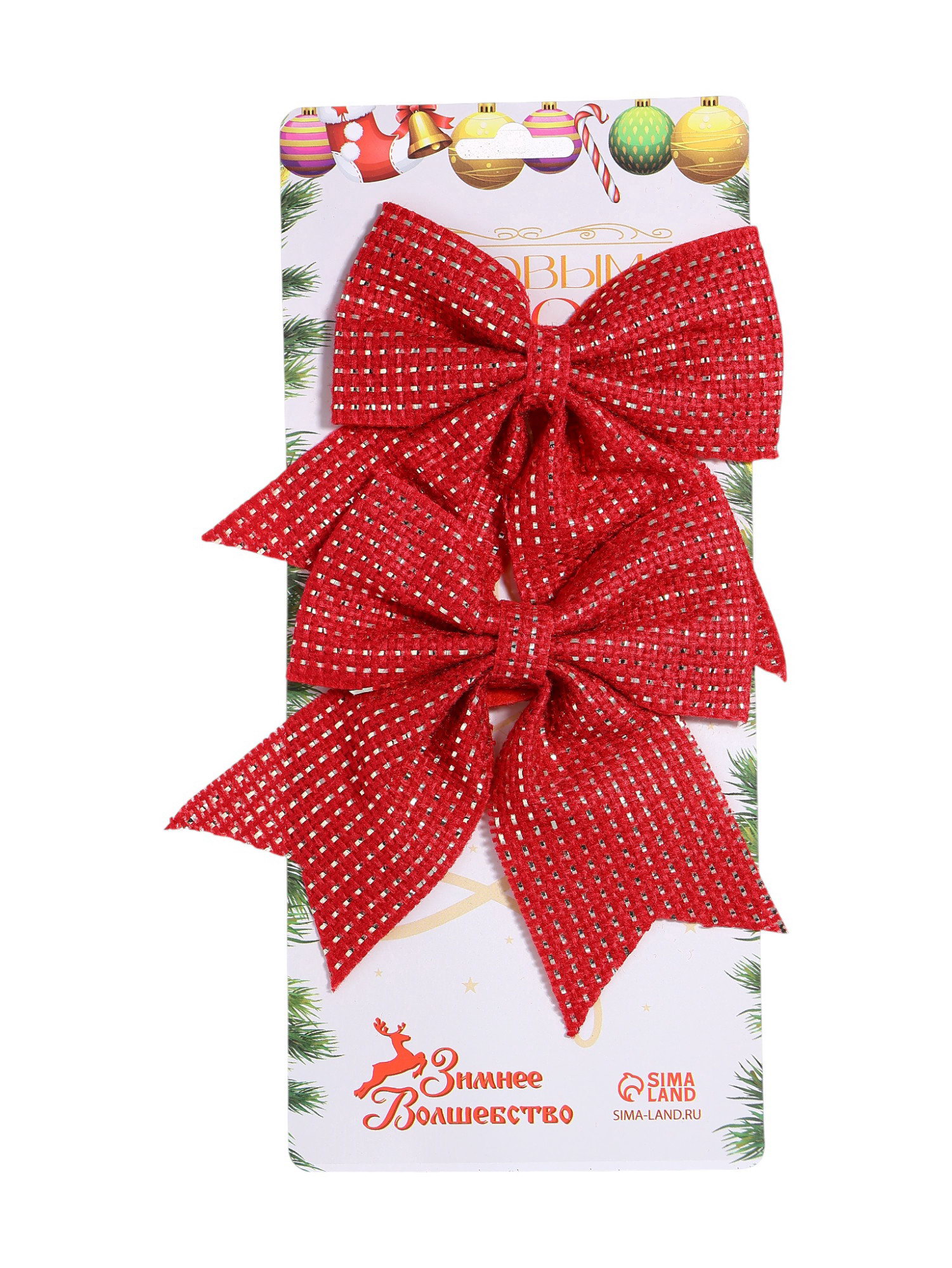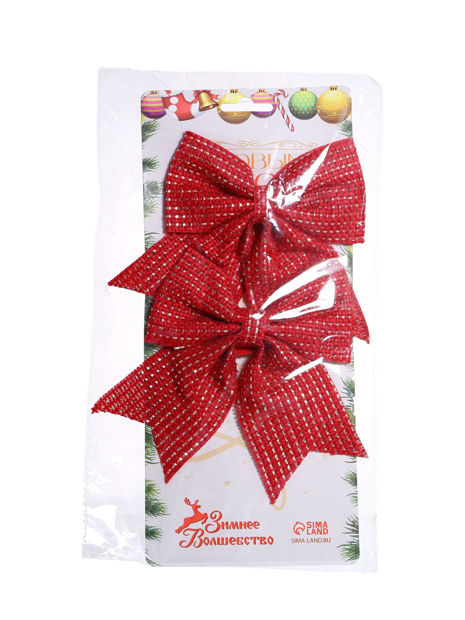 Ёлочные игрушки 2 шт. "Зимнее волшебство. Бантик плетёный" пластик, 15x12 см, красный, 15x12 см., Зимнее волшебство, Китай