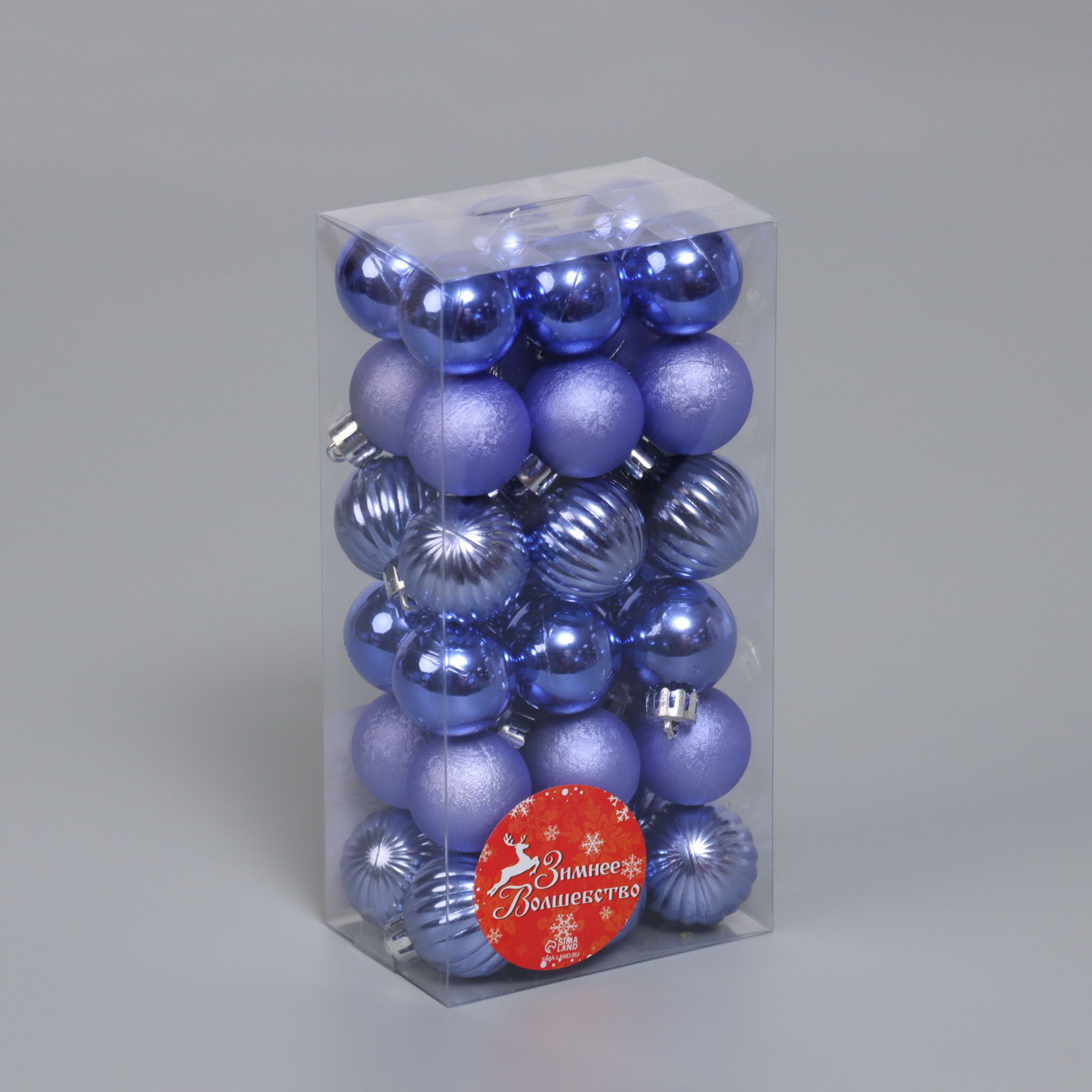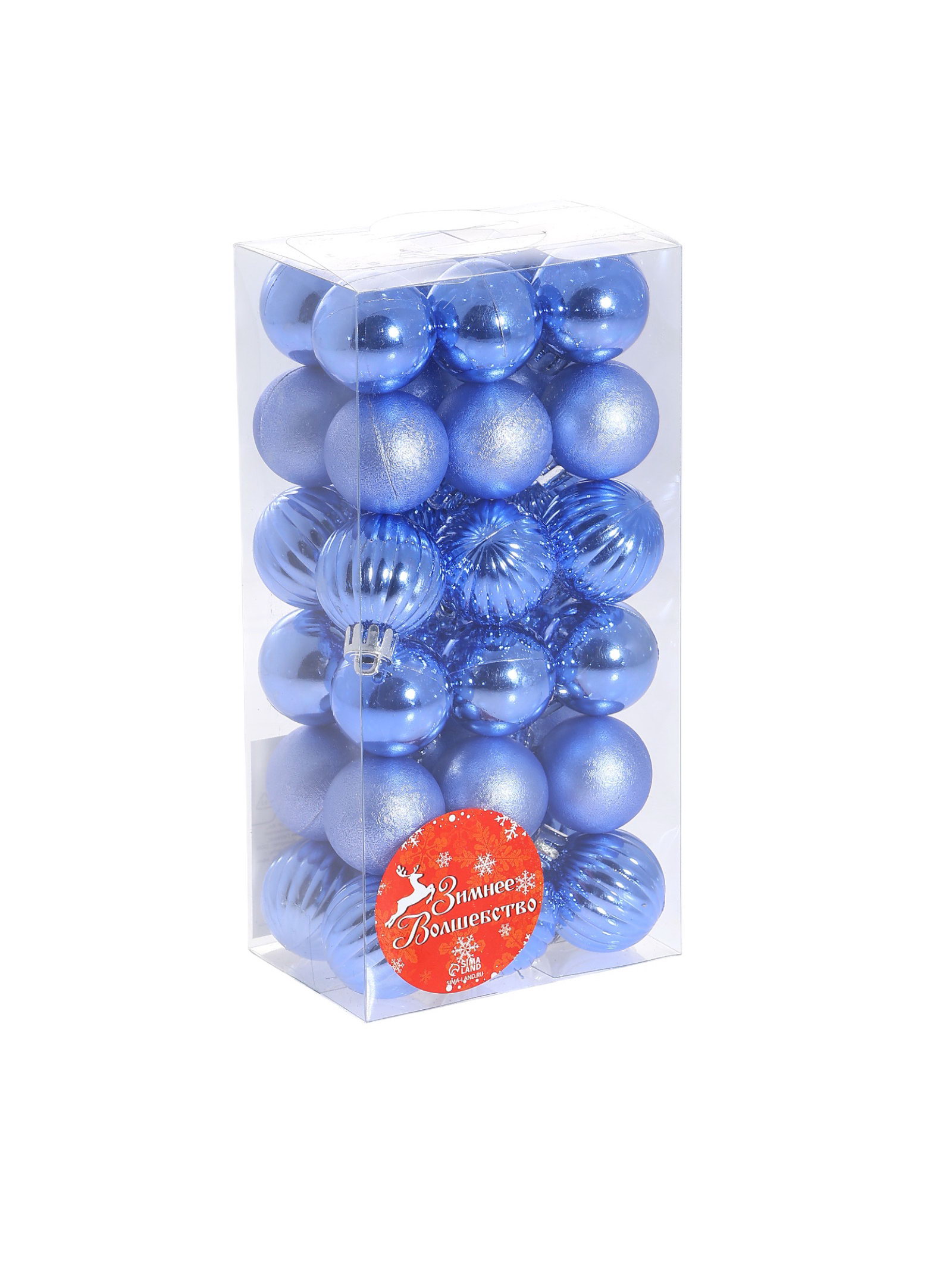 Ёлочные игрушки "Лагуна ассорти", шары новогодние, d=3 см, набор 36 шт., синий, 3x3 см., Зимнее волшебство, Китай