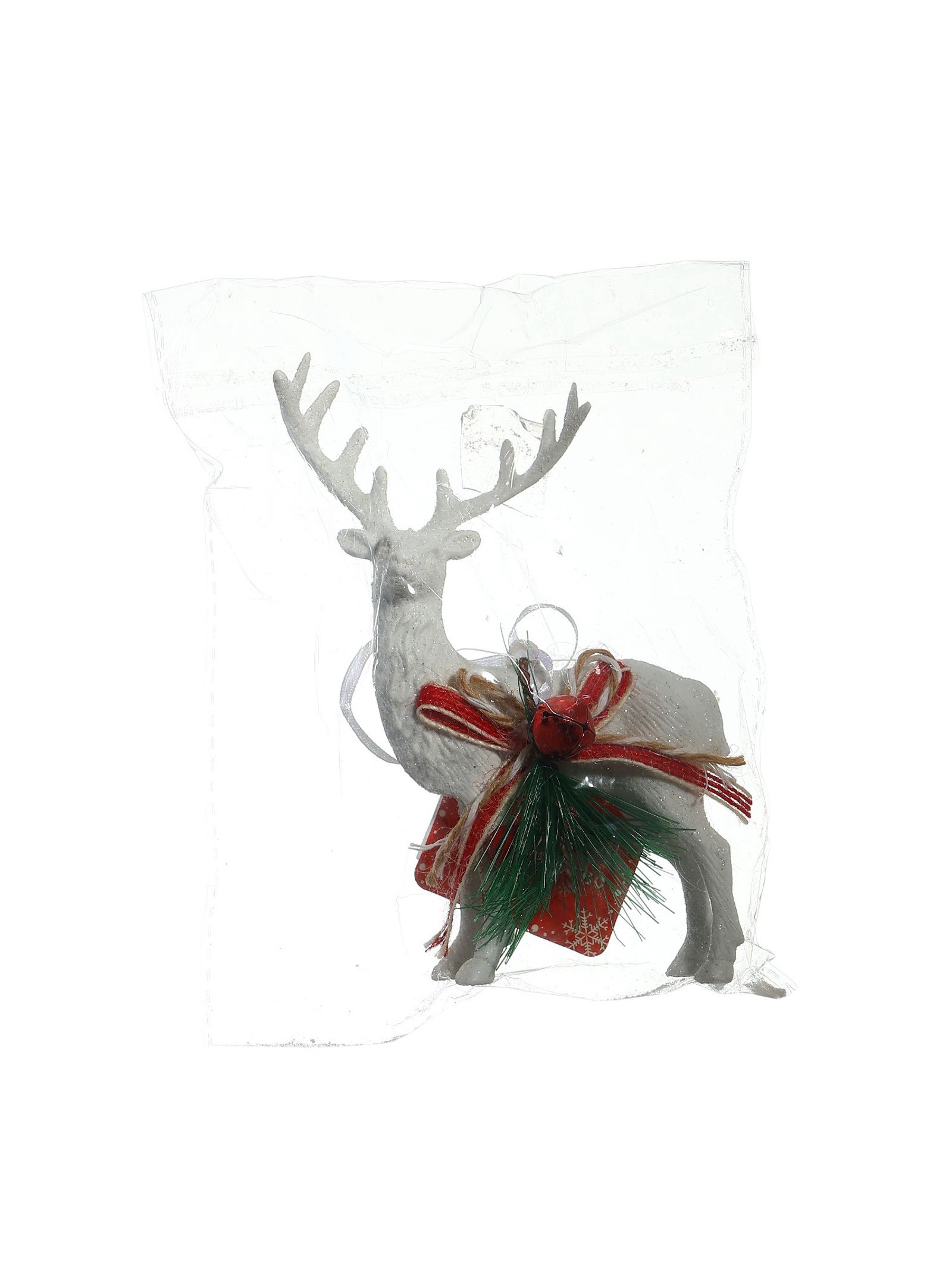 Ёлочная игрушка "Зимнее волшебство. Снежный олень с бубенцом" пластик, 10x15 см, белый, 10x15 см., Зимнее волшебство, Китай