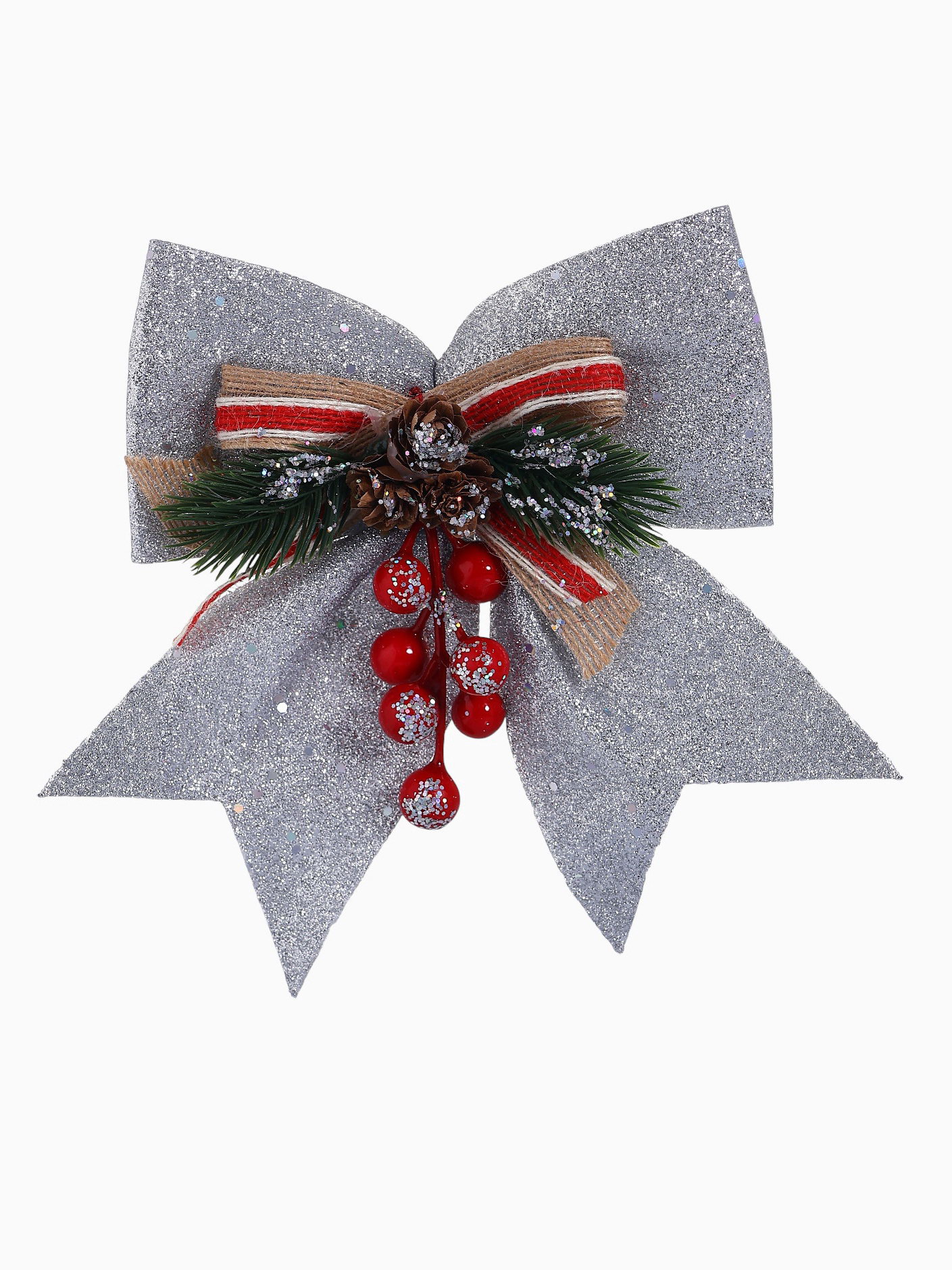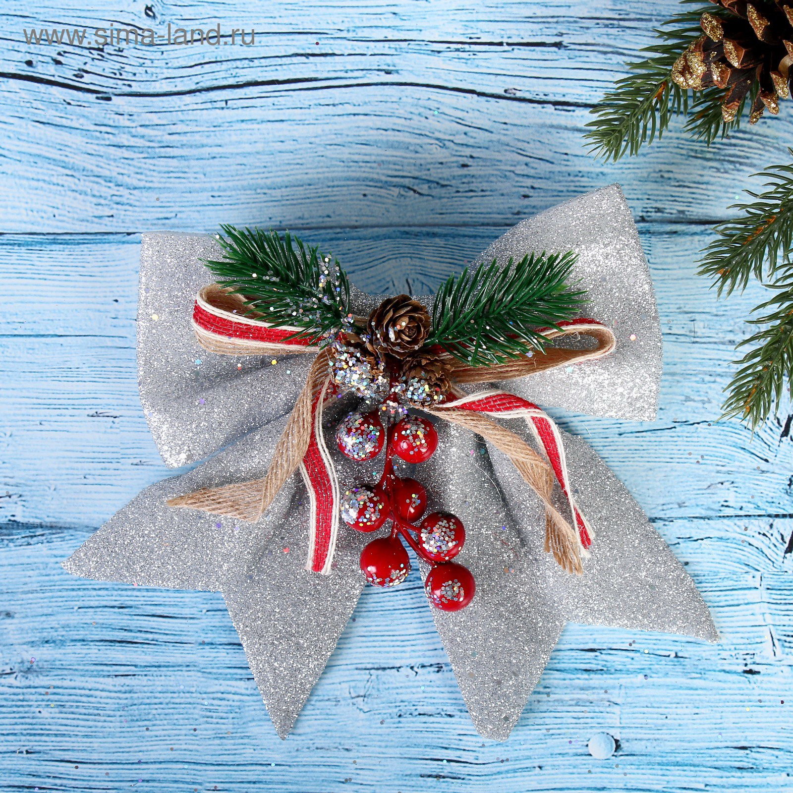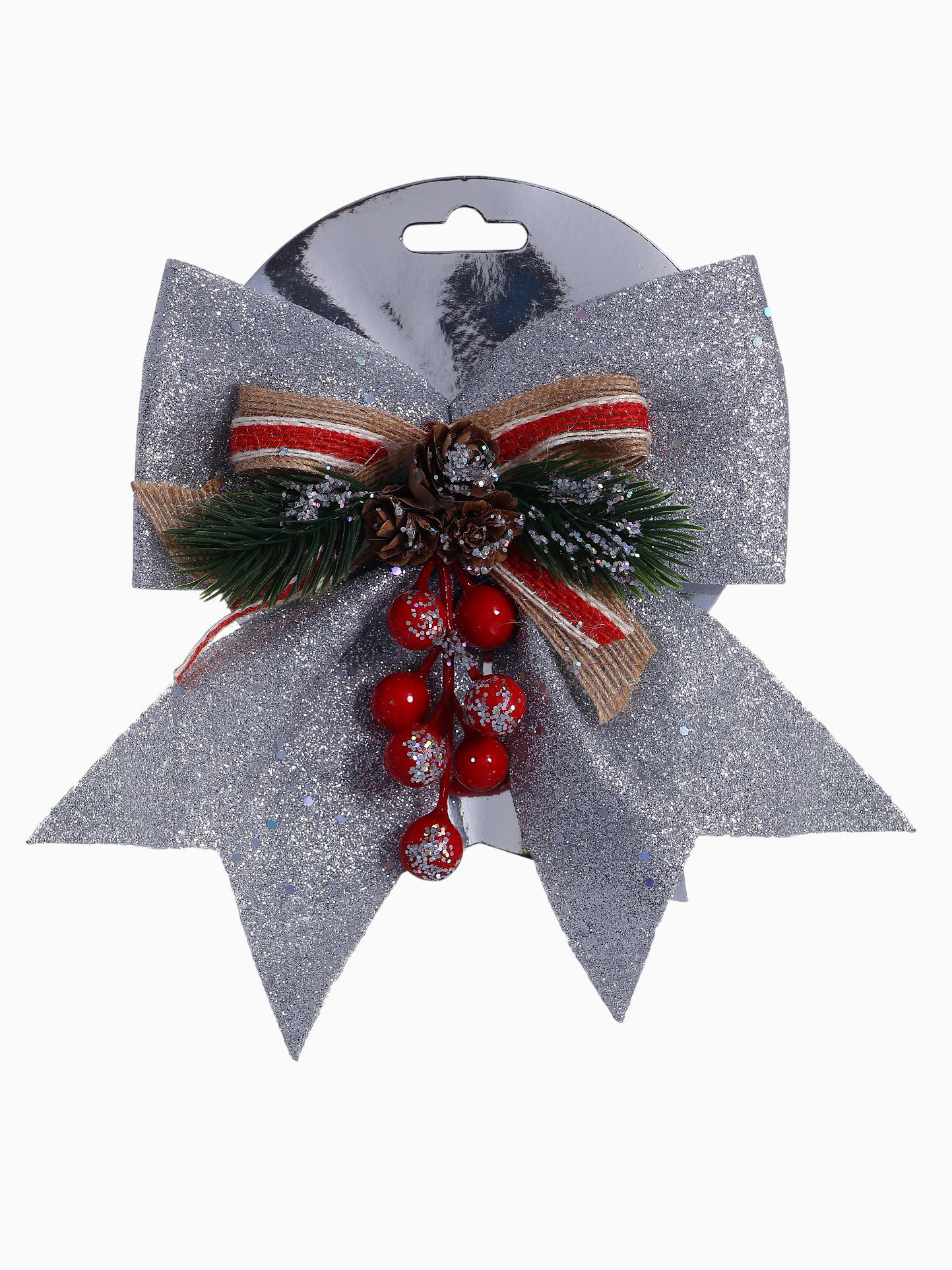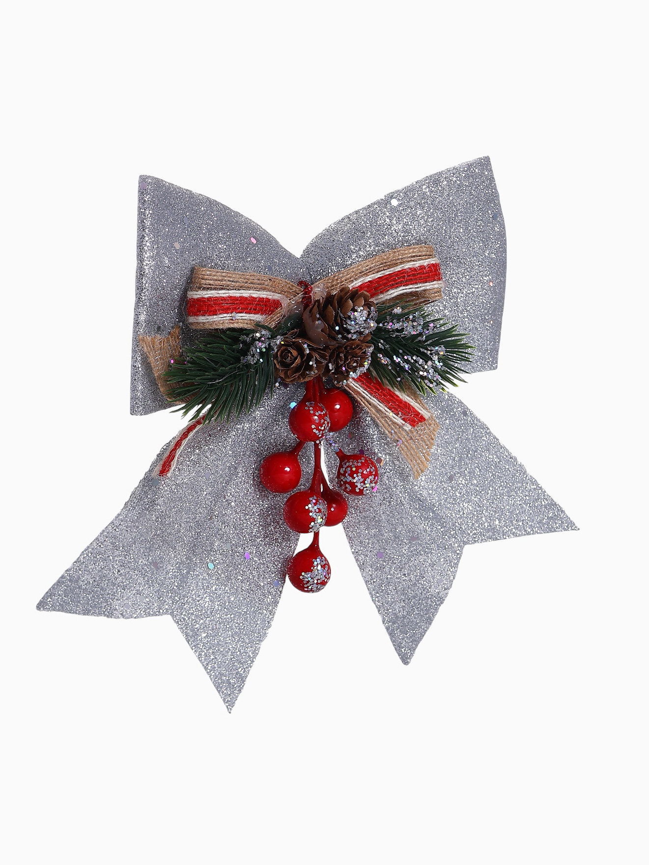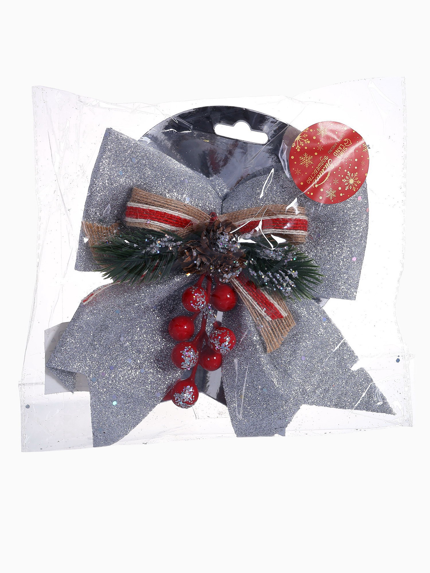 Ёлочная игрушка "Зимнее волшебство. Бант - шишки, ягодки" пластик, 21x18 см, серебро, 21x18 см., Зимнее волшебство, Китай