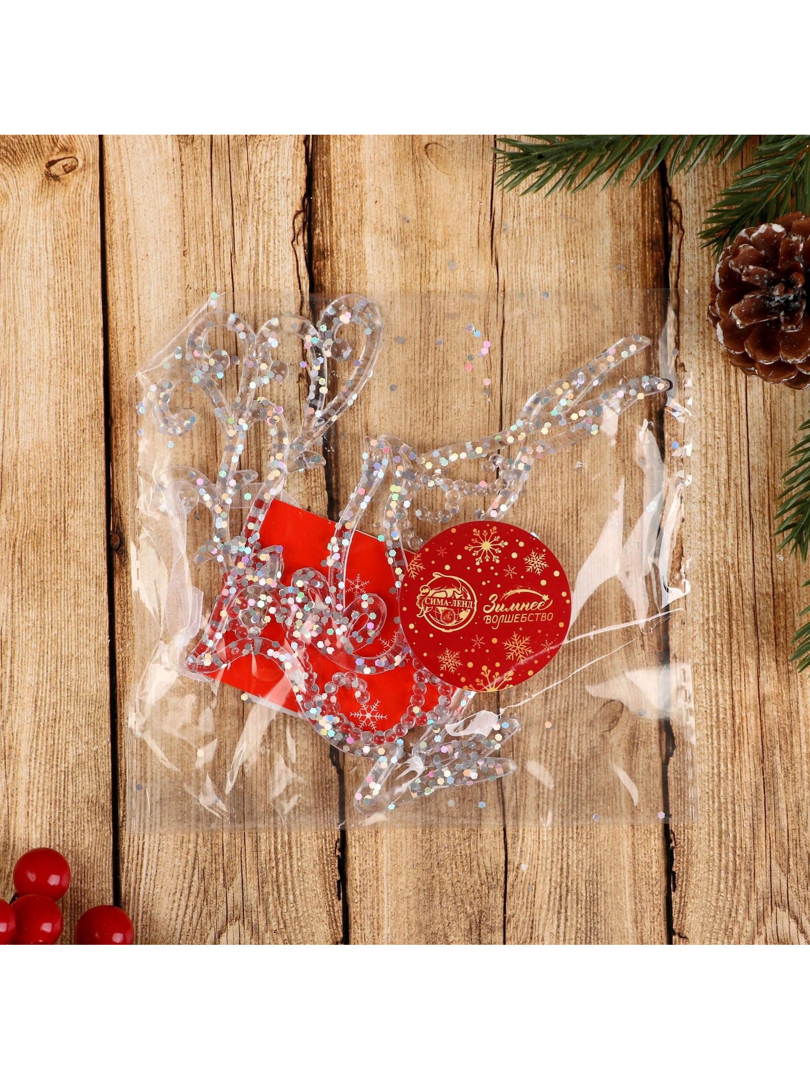 Ёлочная игрушка "Зимнее волшебство. Олень в прыжке - магия", 13x12 см, прозрачный, 13x12 см., Зимнее волшебство, Китай
