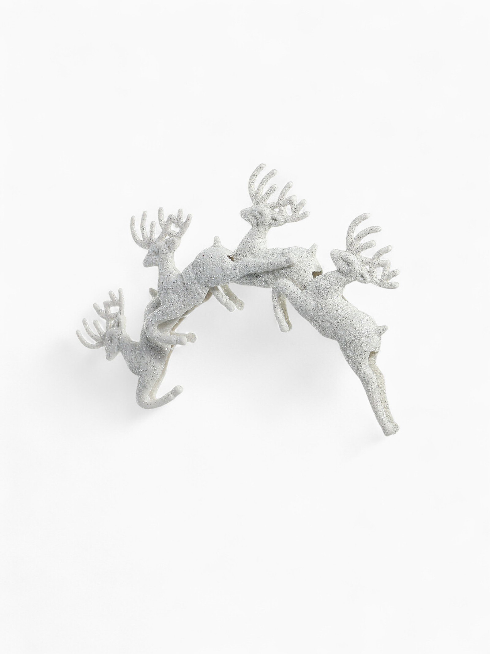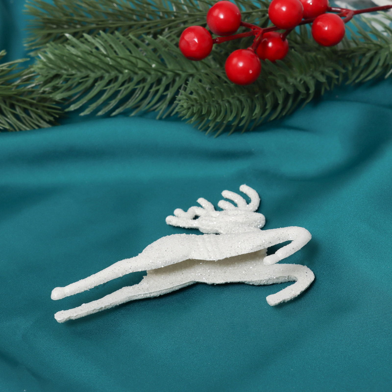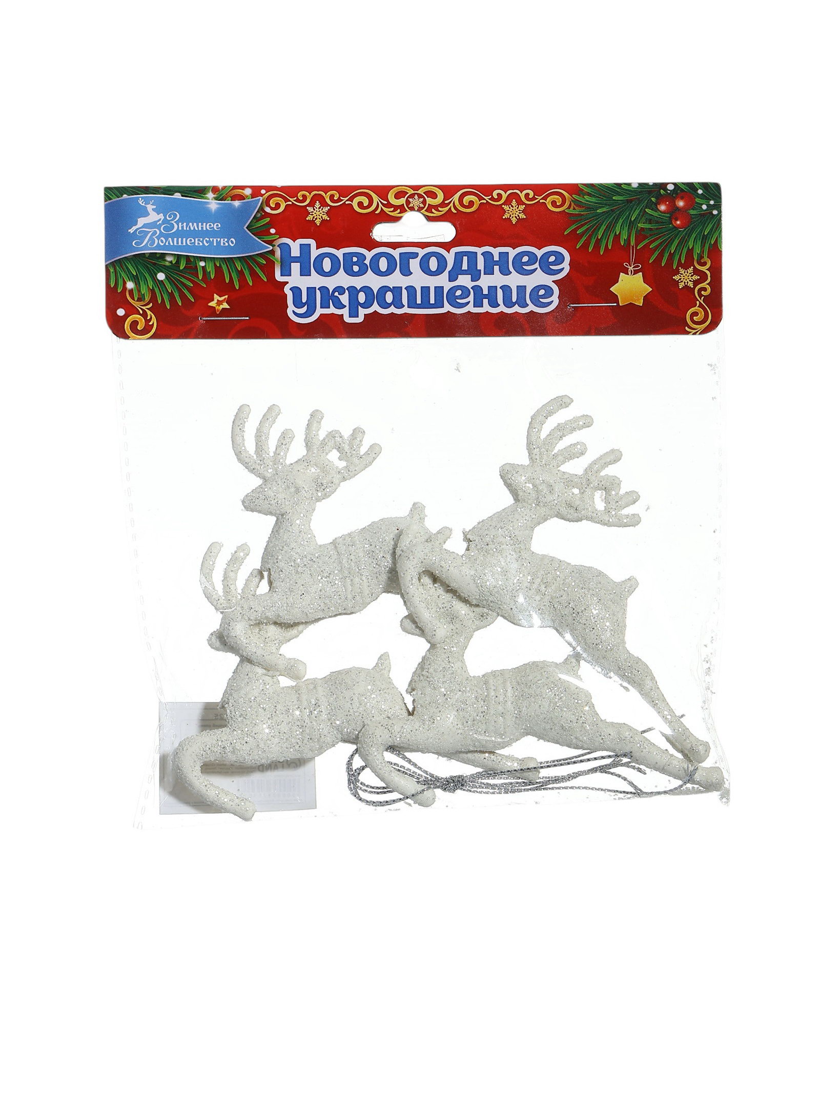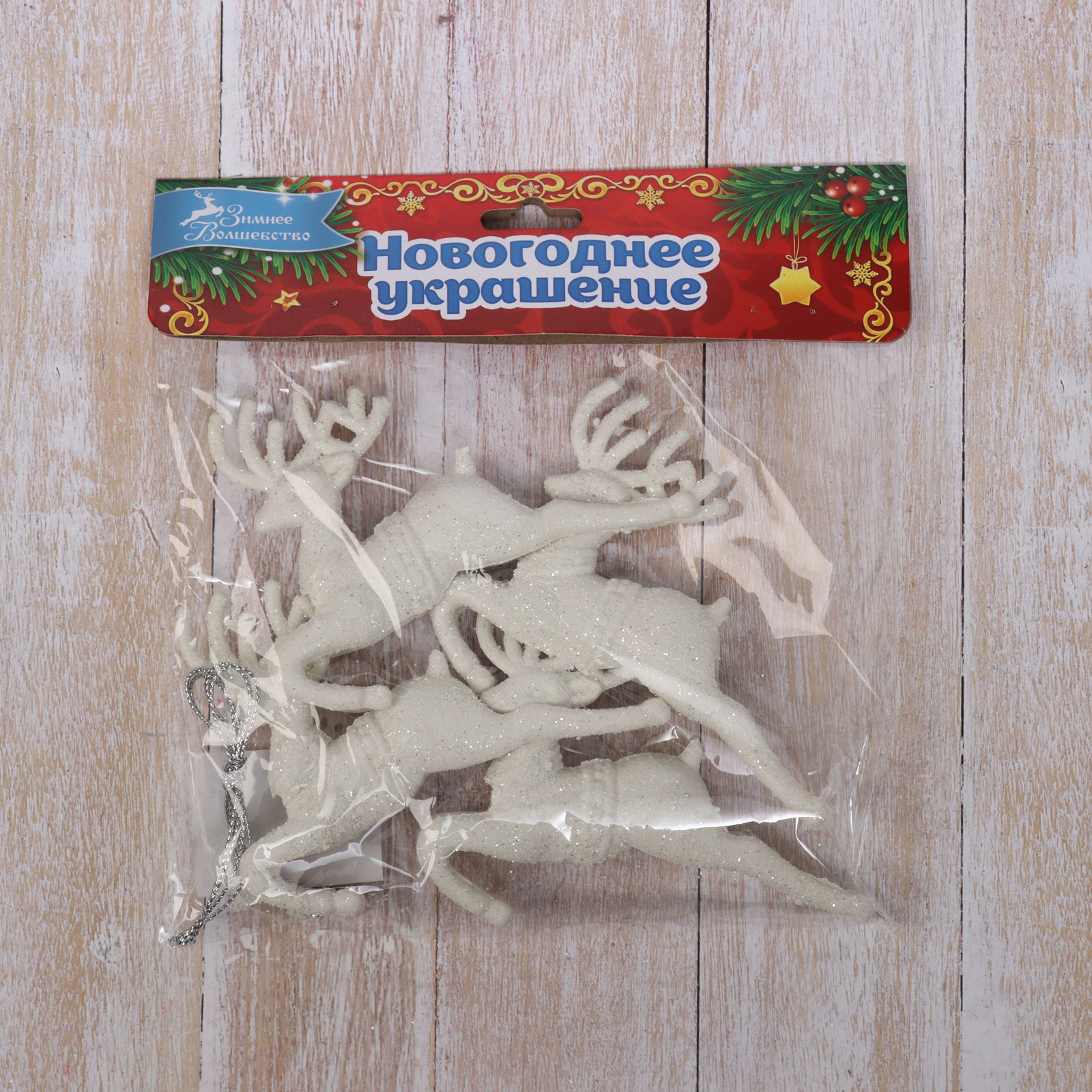 Ёлочные игрушки 4 шт. "Зимнее волшебство. Белый скачущий олень" пластик, 9x5 см, 9x5 см., Зимнее волшебство, Китай