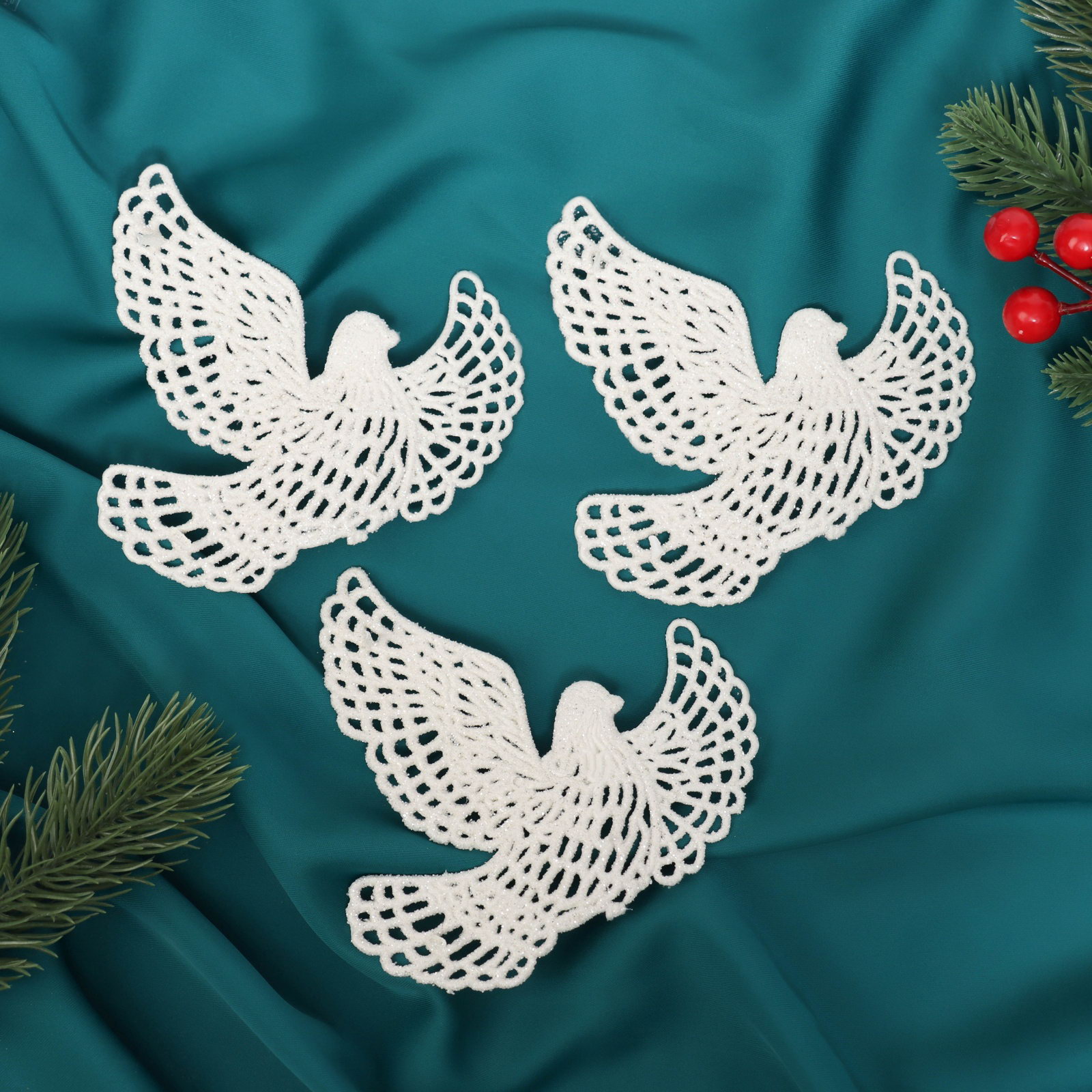 Ёлочные игрушки 3 шт. "Зимнее волшебство. Белая голубка" пластик, 10x11 см, 10x11 см., Зимнее волшебство, Китай