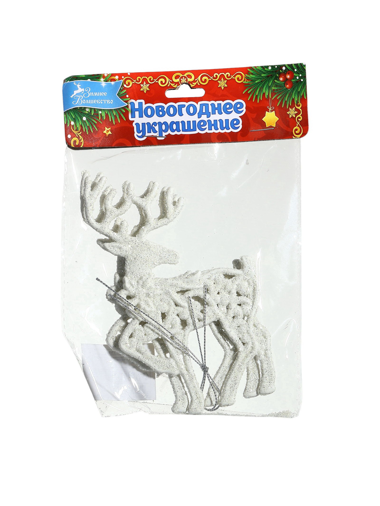Ёлочные игрушки 2 шт. "Зимнее волшебство. Грациозный олень" пластик, 9x12 см, белый, 9x12 см., Зимнее волшебство, Китай