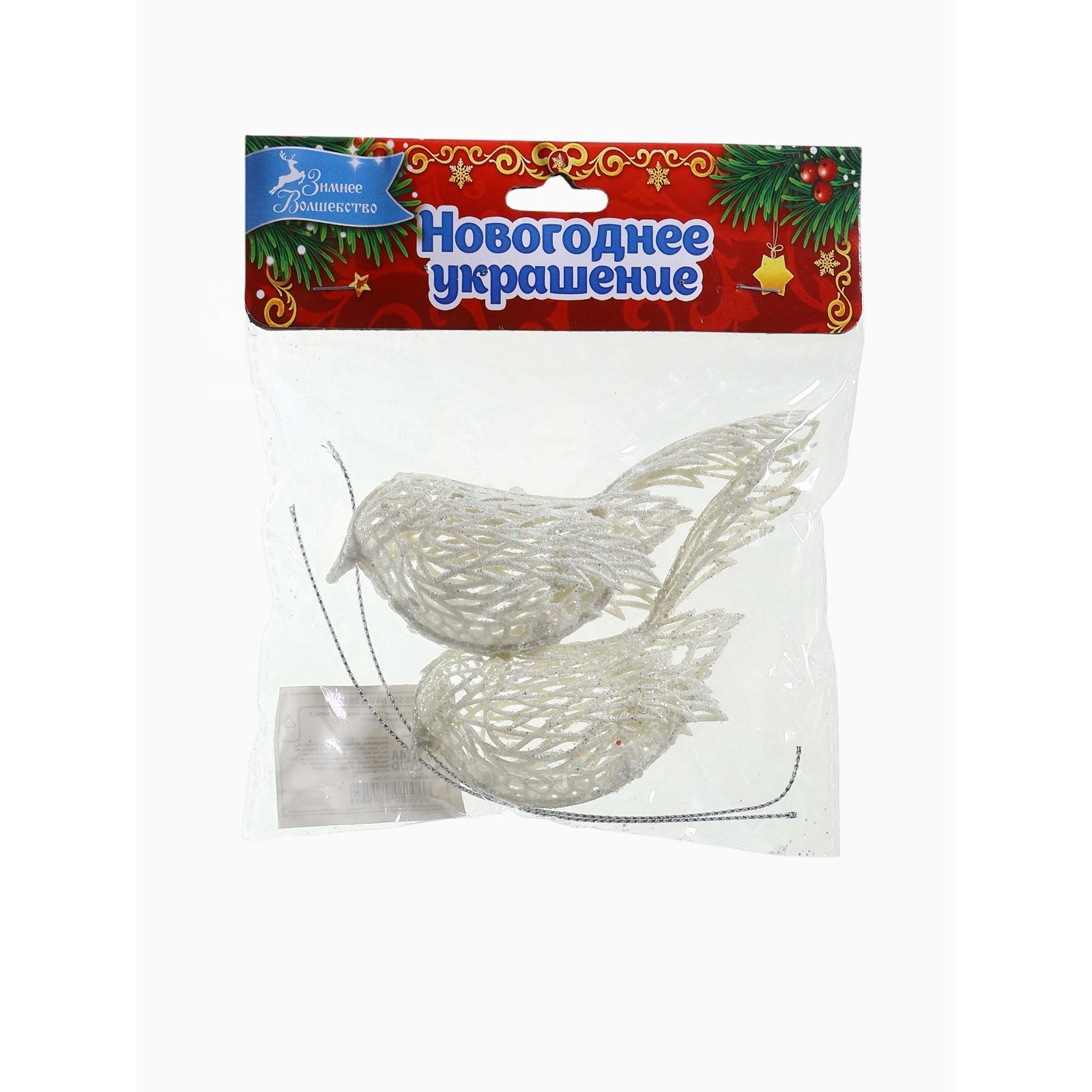 Ёлочные игрушки 2 шт. "Зимнее волшебство. Птички снежные" пластик, 6x3.5 см, белый, 6x3.5 см., Зимнее волшебство, Китай