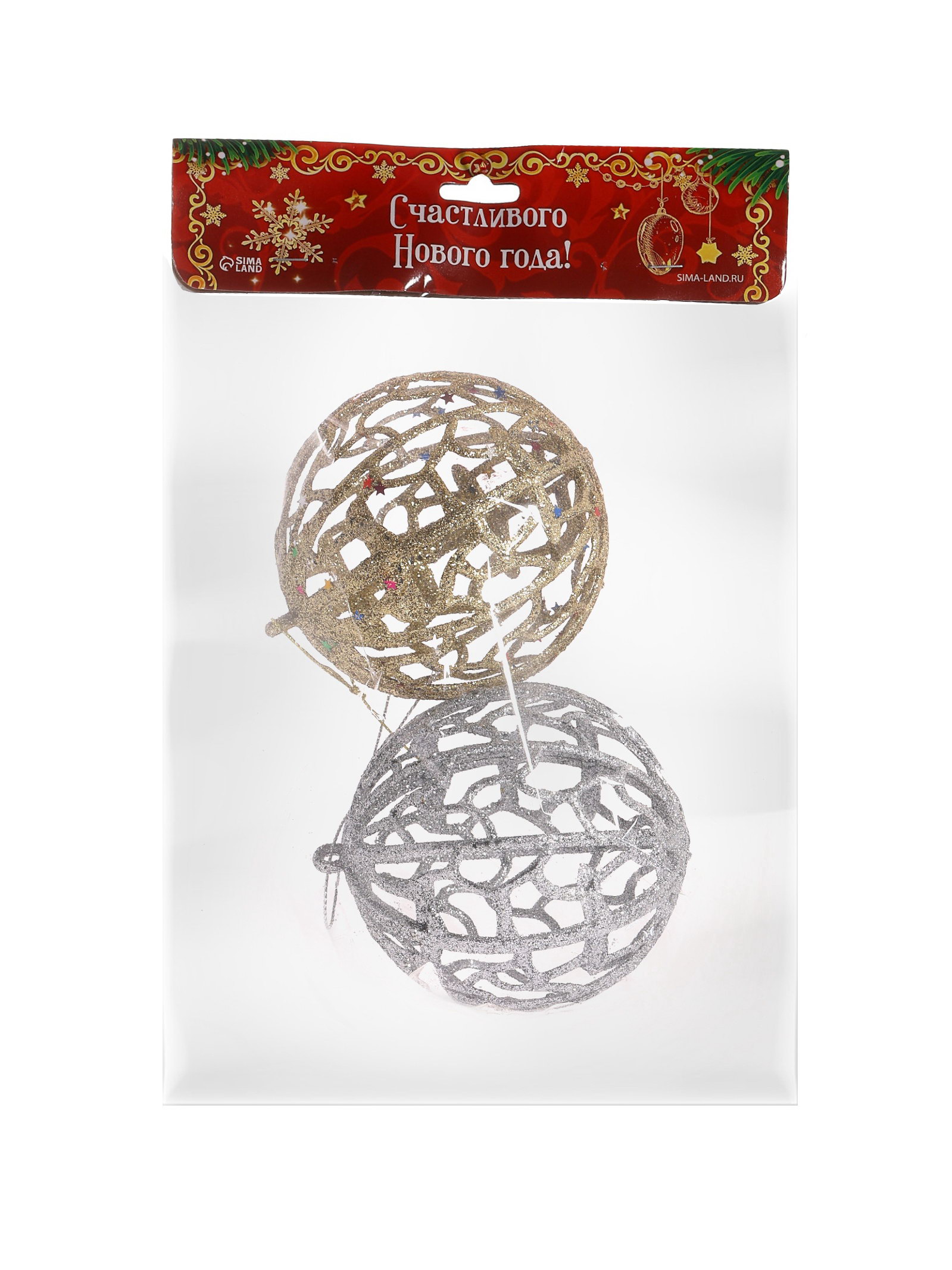 Особенности: Однотонная, Резная Цвет: Золотистый, Серебристый Стиль: Ар-деко, Датский, Классика, Скандинавский Размер упаковки: 9 x 9 x 16 см. Форма игрушки: Шар Тематика праздника: Новый год Символ года: Нет Рисунок: Да Диаметр шара, см: 8 В наборе, шт.: 2 Набор: Да Набор из двух новогодних шаров с резным рисунком в серебристых и золотистых оттенках сочетает классический и скандинавский стили. Пластиковые украшения диаметром 8 см создают изысканный акцент в праздничном декоре, подчёркивая утончённость и гармонию оформления. Особенности