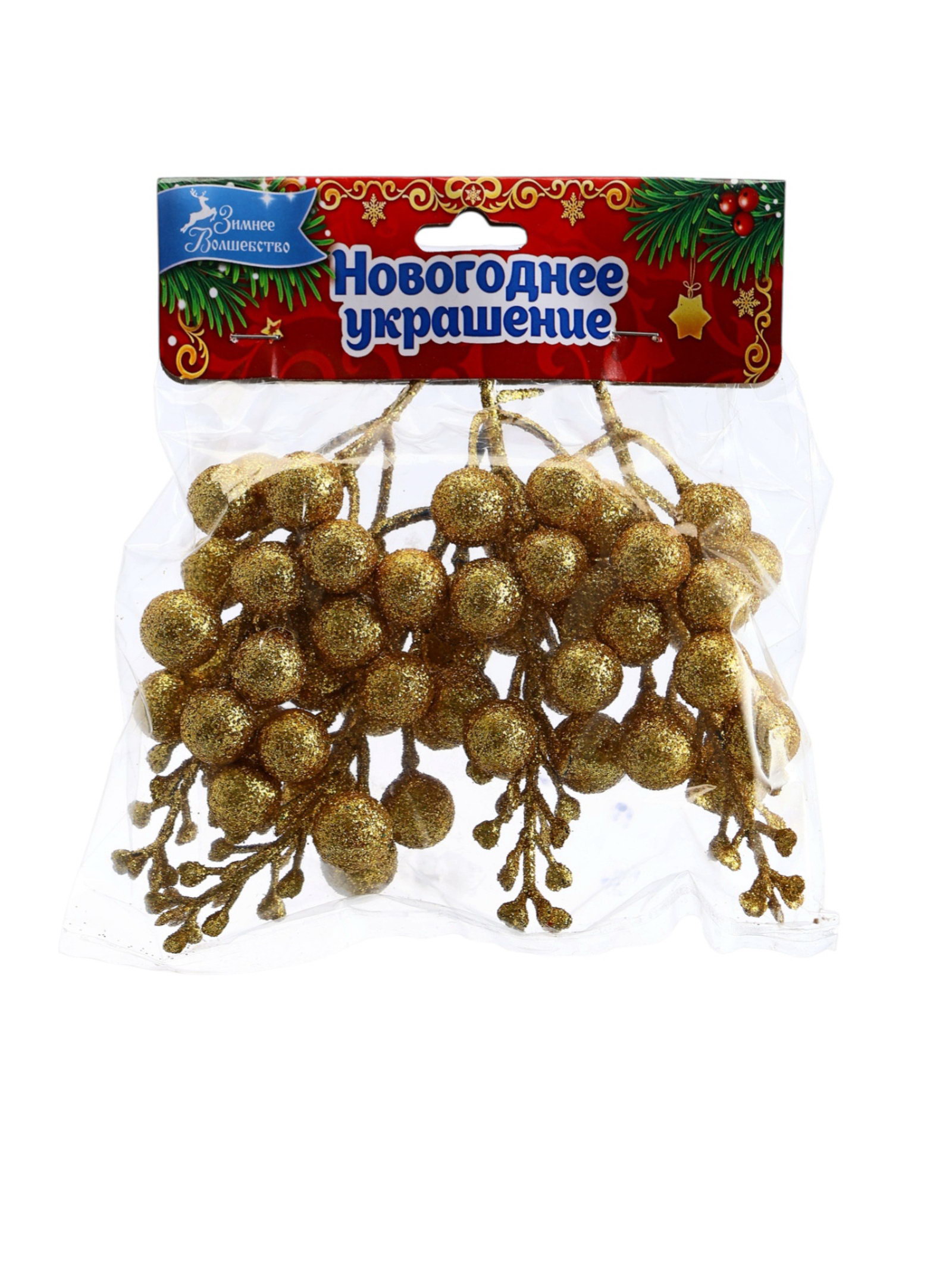 Ёлочные игрушки 4 шт. "Зимнее волшебство. Веточки с ягодками" пластик, 4x13 см, золото, 4x13 см., Зимнее волшебство, Китай