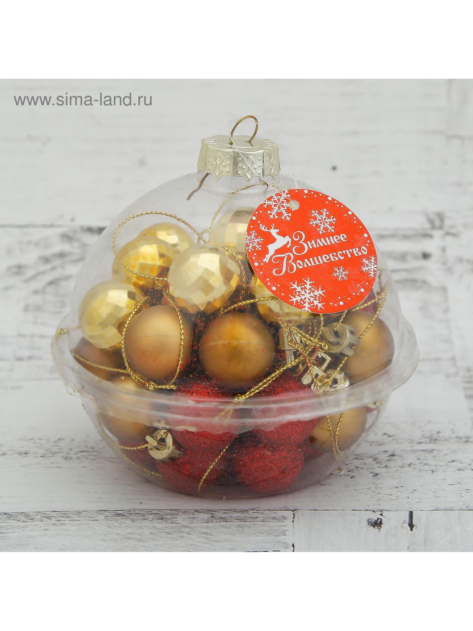 Ёлочные игрушки "Малышки в шарике", шары новогодние, d=2.5 см, набор 40 шт., красный/золотистый, 2.5x2.5 см., Зимнее волшебство, Китай