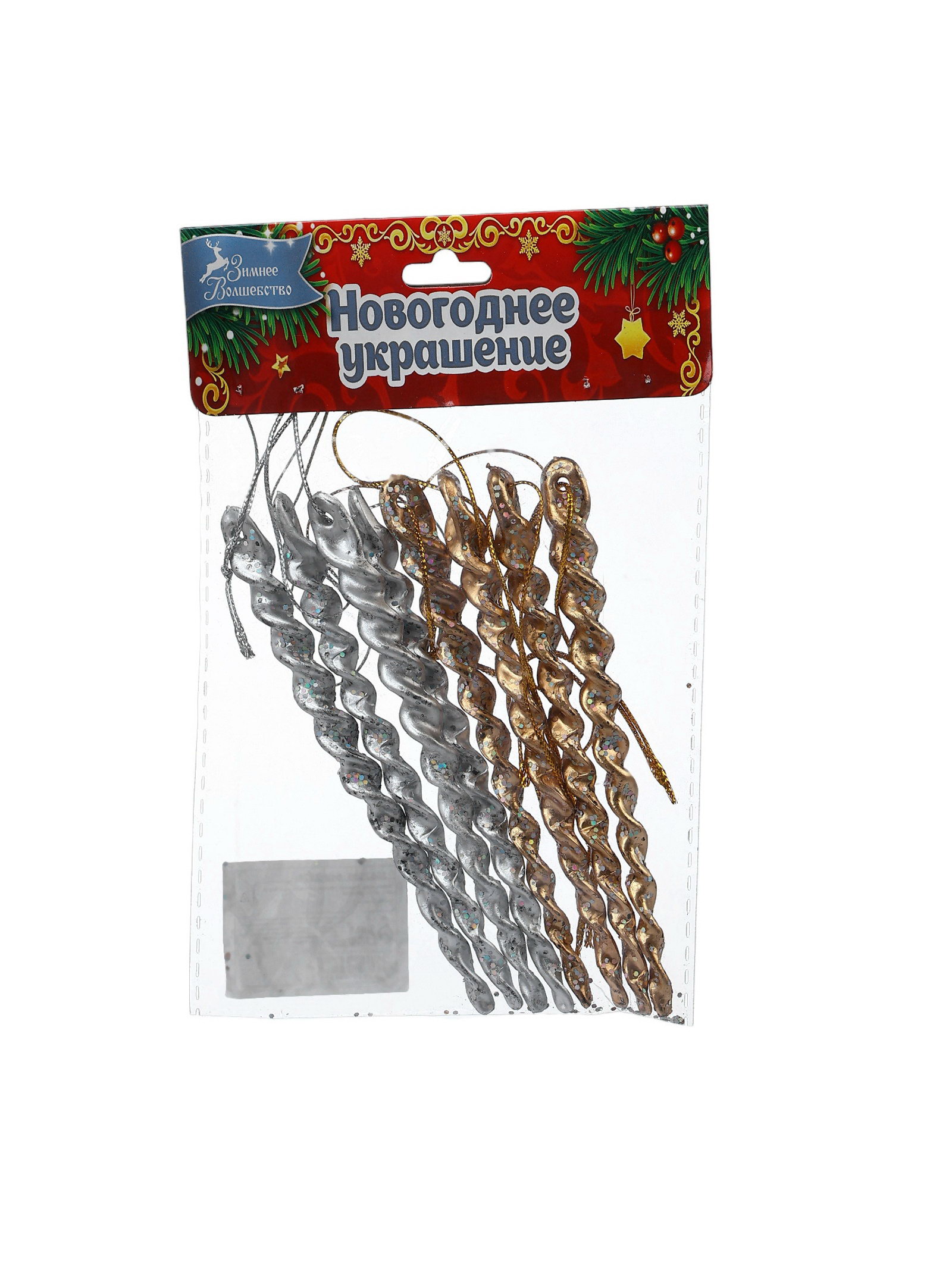 Ёлочные игрушки набор 8 шт. "Витые сосульки", 12 см, серебро/золото, 12 см., Зимнее волшебство, Китай
