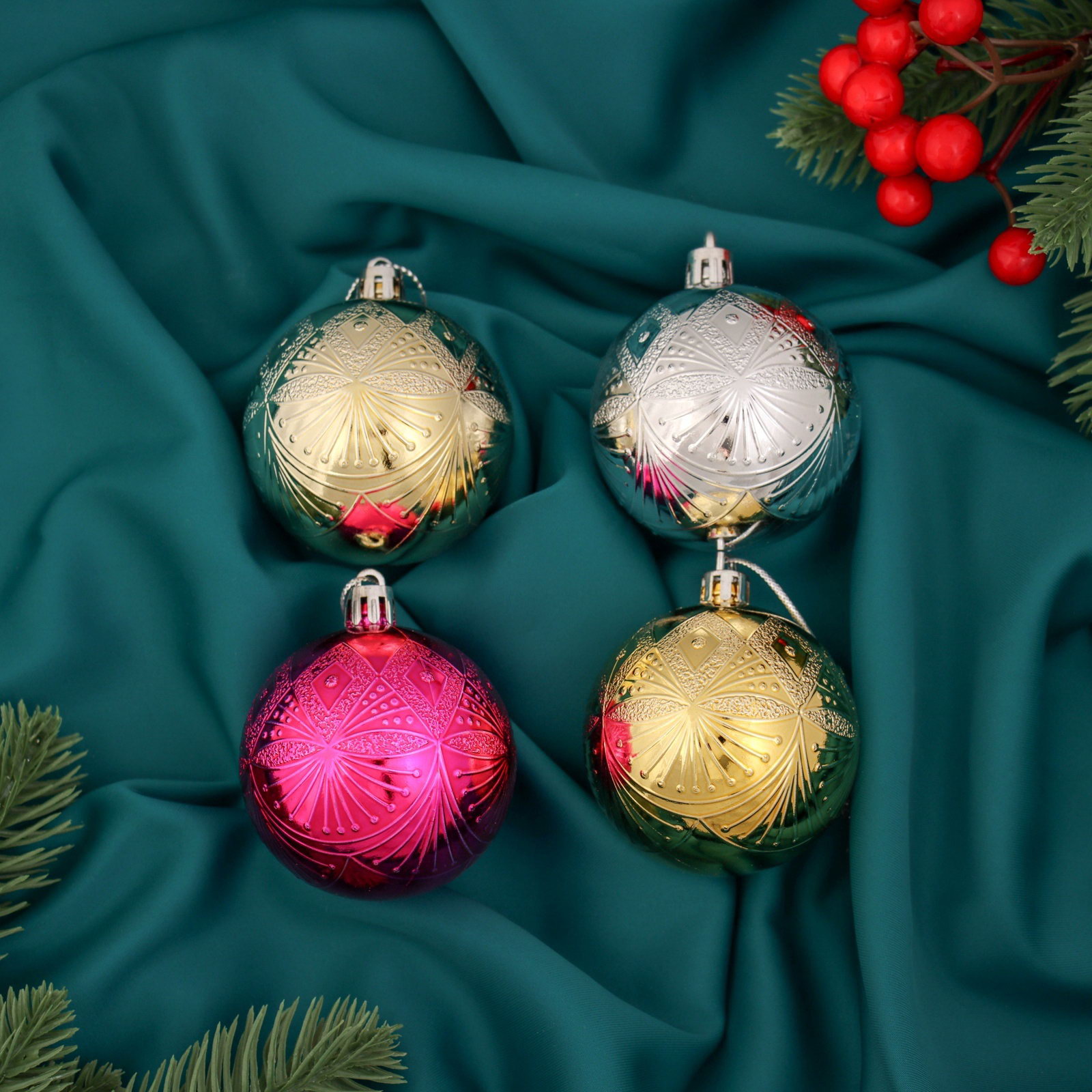 Ёлочные игрушки "Ария", шары новогодние, d=6 см, набор 4 шт., МИКС, 6x6 см., Зимнее волшебство, Китай