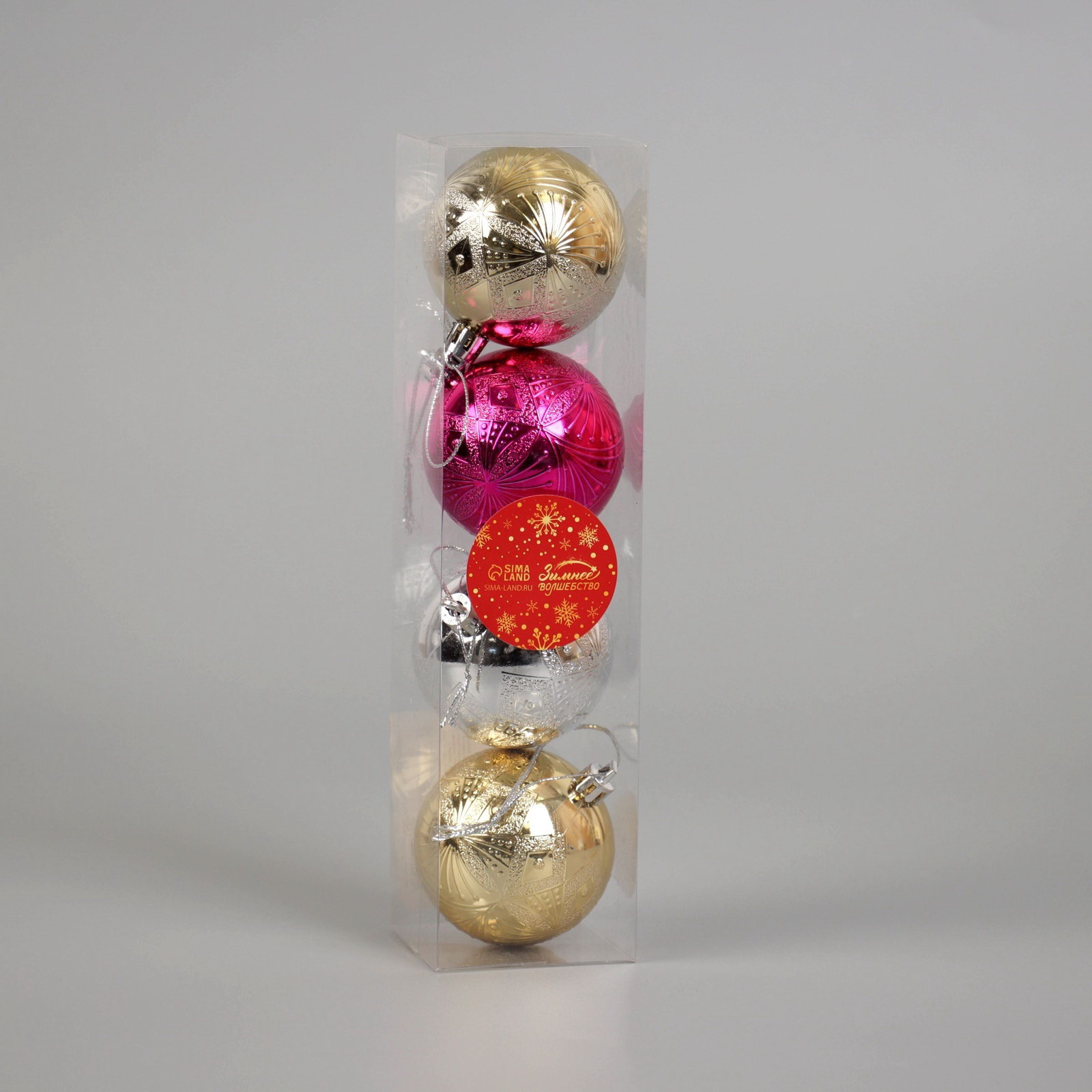 Особенности: Однотонная, Рельефная Размер упаковки: 5.5 x 5.5 x 23.5 см. Форма игрушки: Шар Символ года: Нет Тематика праздника: Новый год Тематика праздника: Новый год tnved: 9505109000 Рисунок: Да Цвет: МИКС В наборе, шт.: 4 Набор: Да Диаметр шара, см: 6 Стиль: Фьюжн Набор из 4 разноцветных ёлочных шаров диаметром 6 см в стиле фьюжн. Эти пластиковые украшения сочетают простоту однотонного дизайна с яркими оттенками, создавая современный и гармоничный образ новогодней ёлки. Особенности