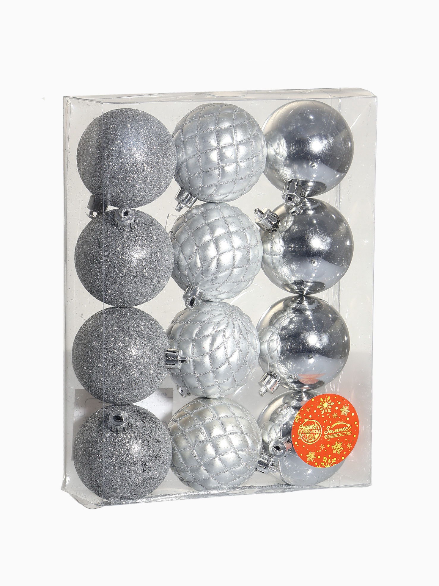 Ёлочные игрушки "Ларго", шары новогодние, d=6 см, 12 шт., серебро, 6x6 см., Зимнее волшебство, Китай