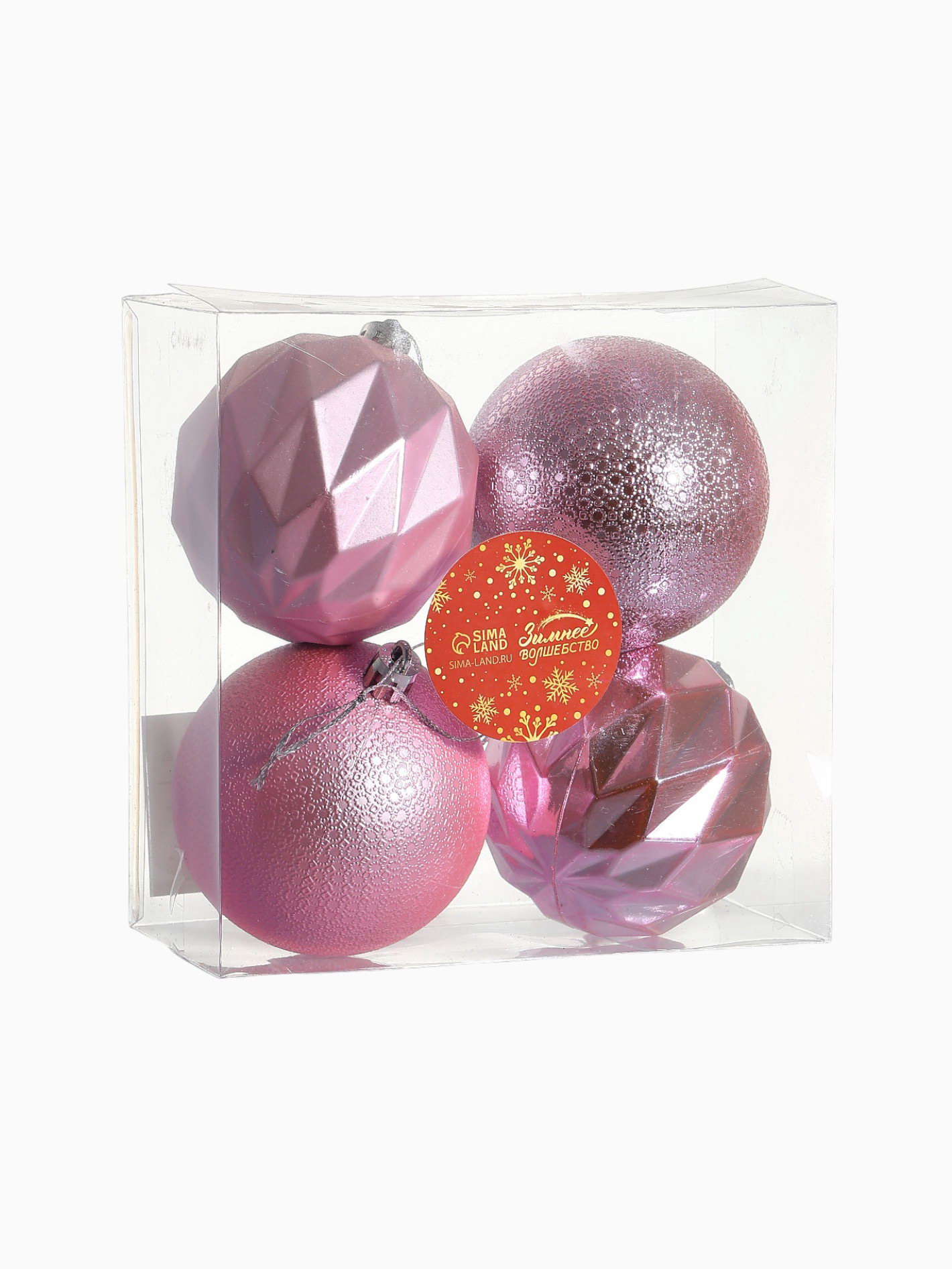 Ёлочные игрушки "Геометрия форм", шары новогодние, d=7 см, набор 4 шт., розовый, 7x7 см., Зимнее волшебство, Китай