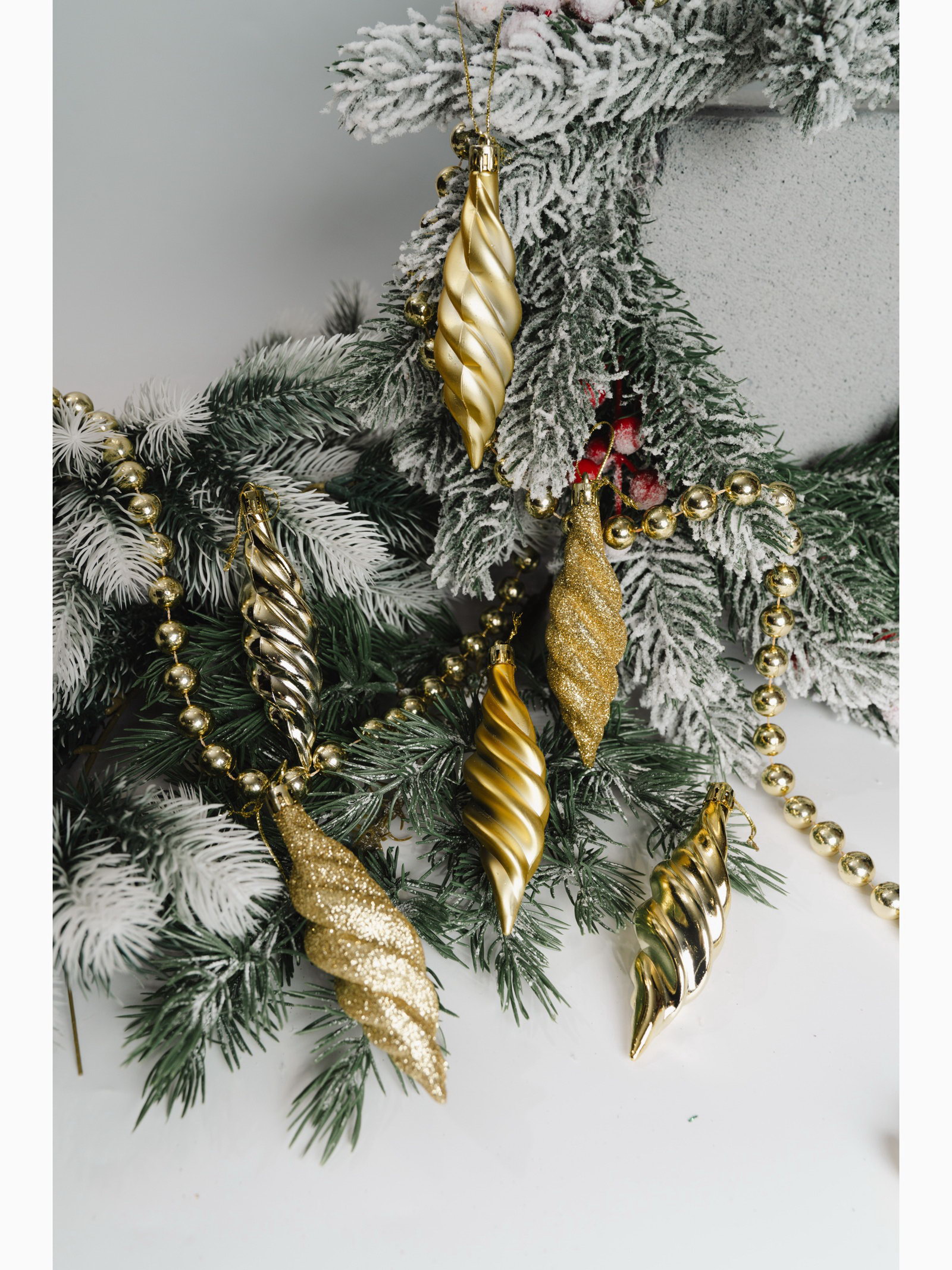 Ёлочные игрушки 6 шт. "Сосулька блестящая", 3x10 см, золото, 3x10 см., Зимнее волшебство, Китай