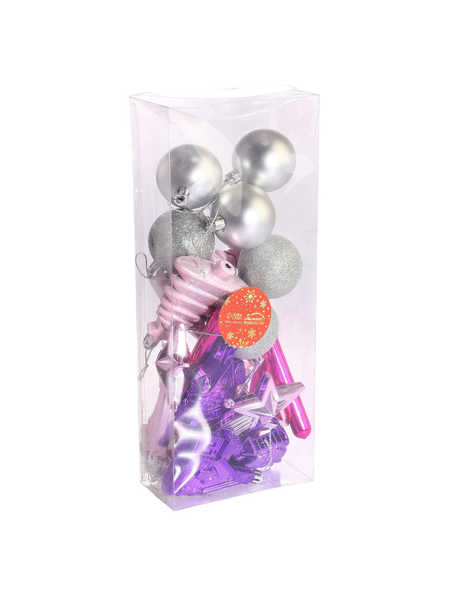 Ёлочные игрушки "Вечер чуда", шары новогодние, набор 18 шт., серебристый/сиреневый, 10.5x6x29.5 см., Зимнее волшебство, Китай