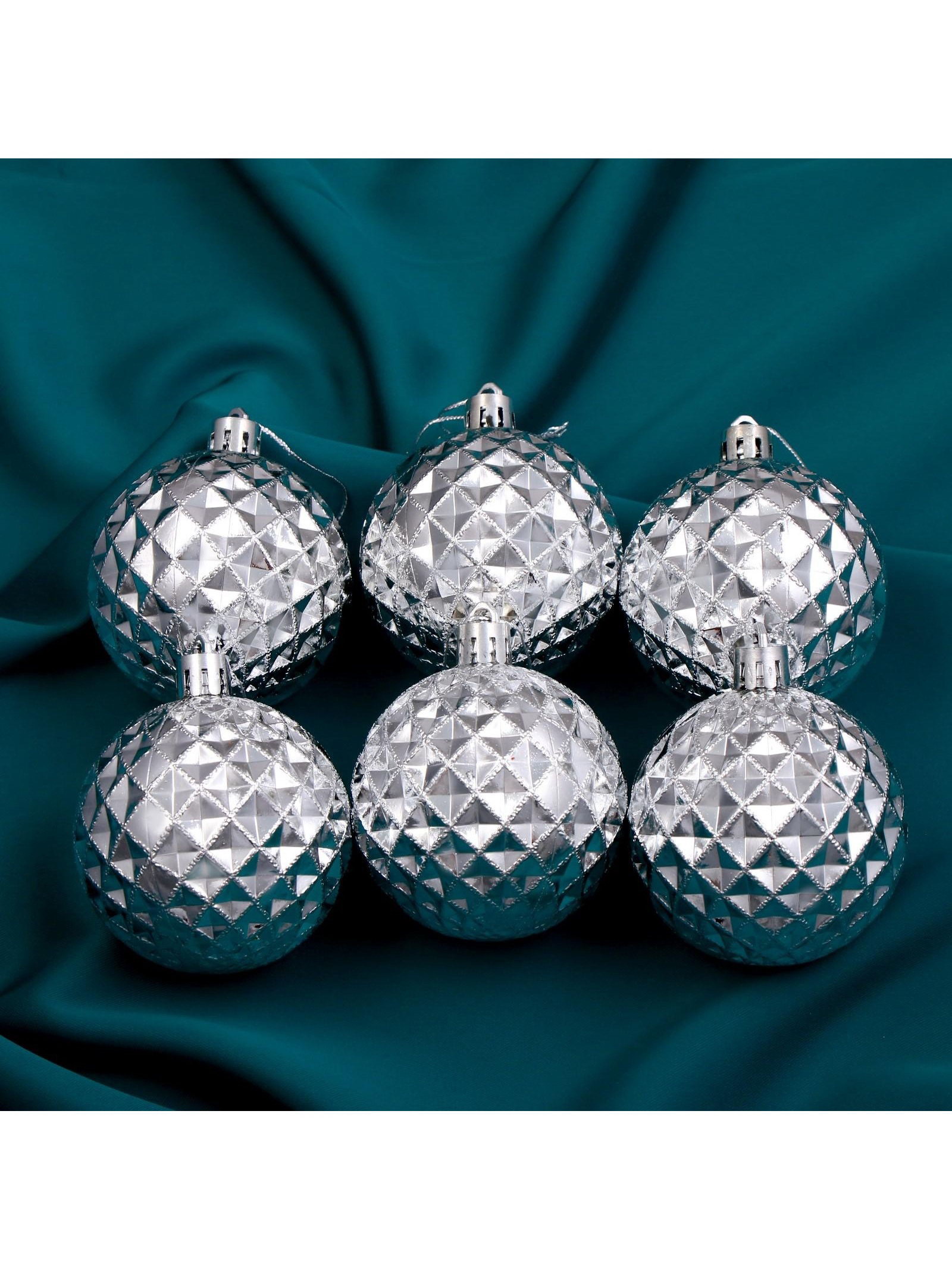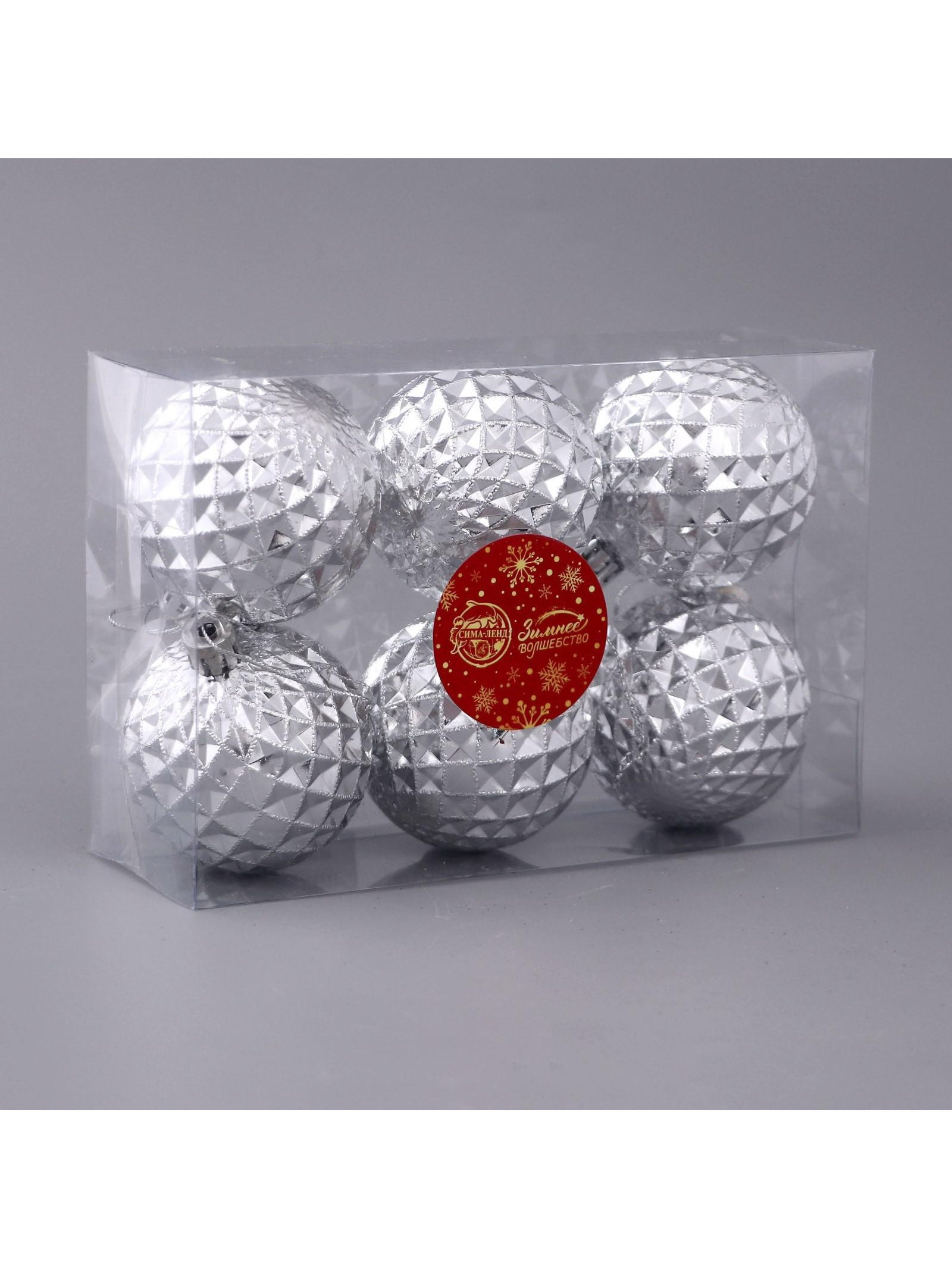 Ёлочные игрушки "Объёмная сеточка", шары новогодние, d=6 см, набор 6 шт., серебро, 6x6 см., Зимнее волшебство, Китай
