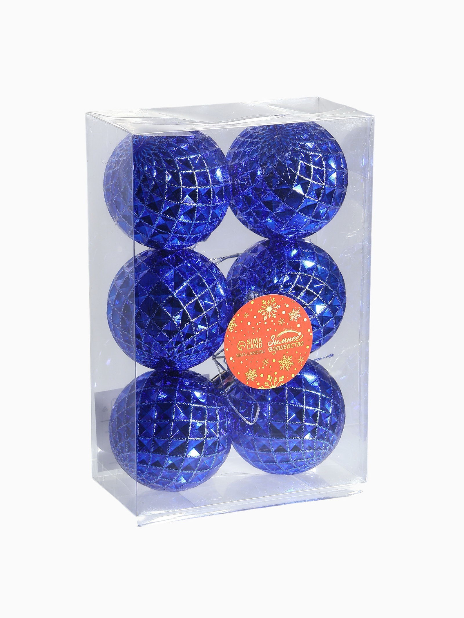 Ёлочные игрушки "Сетка", шары новогодние, набор 6 шт., d=6 см, синий, 6x6 см., Зимнее волшебство, Китай