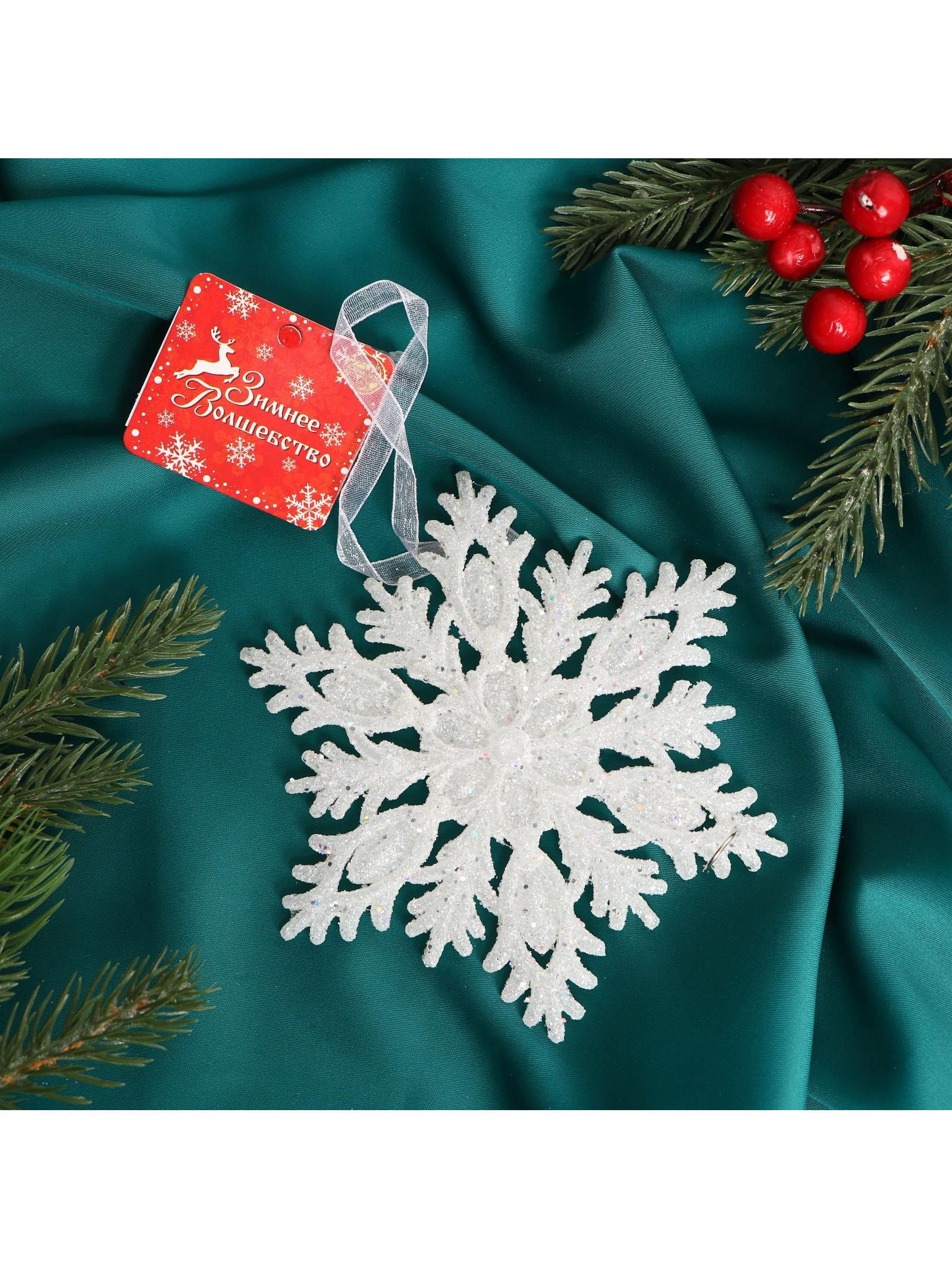 Ёлочная игрушка "Зимнее волшебство. Морозная снежинка", 13 см, белый, 13x13 см., Зимнее волшебство, Китай