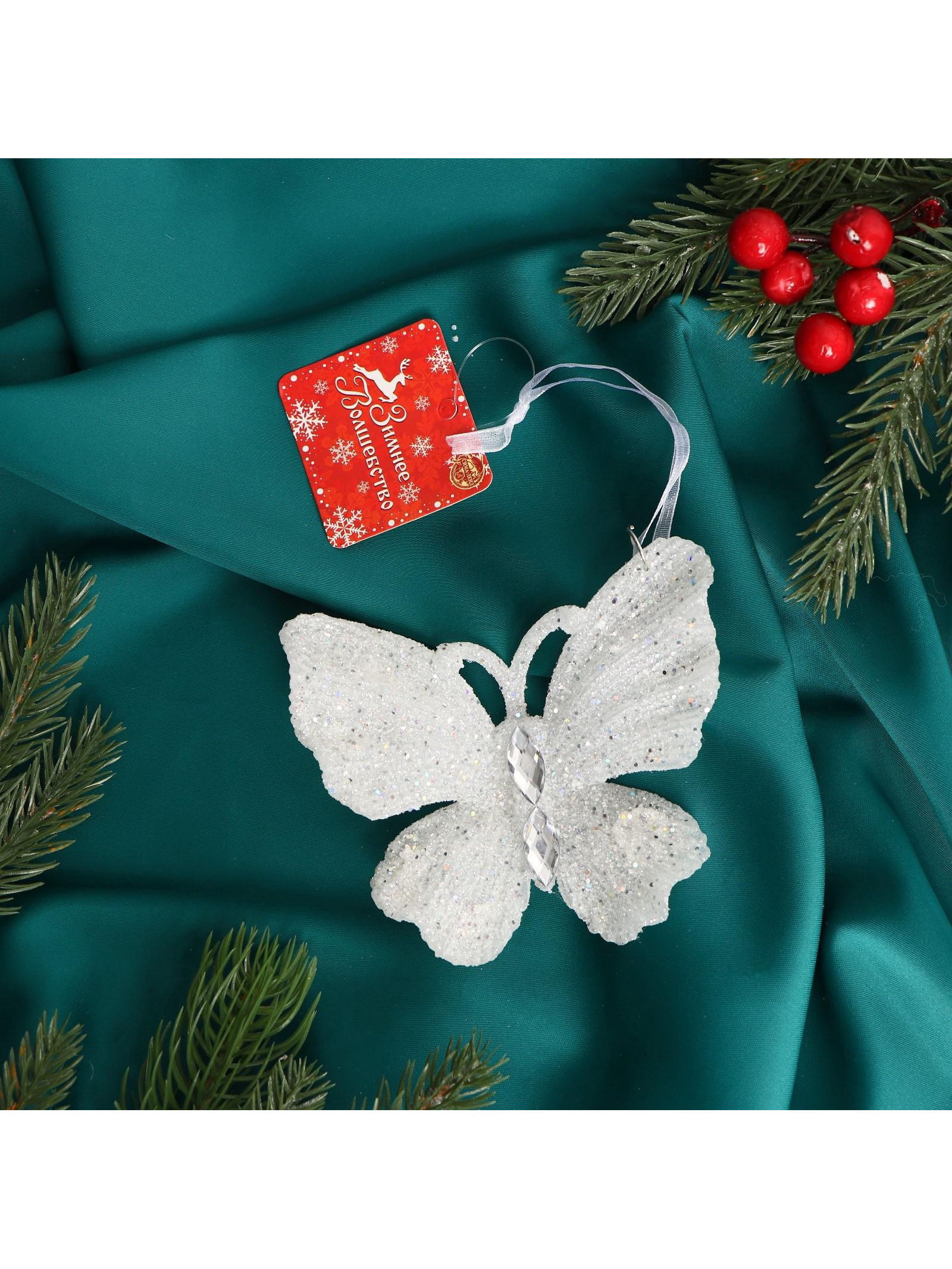 Ёлочная игрушка "Зимнее волшебство. Морозная бабочка", 10.5x10 см, белый, 10.5x10 см., Зимнее волшебство, Китай