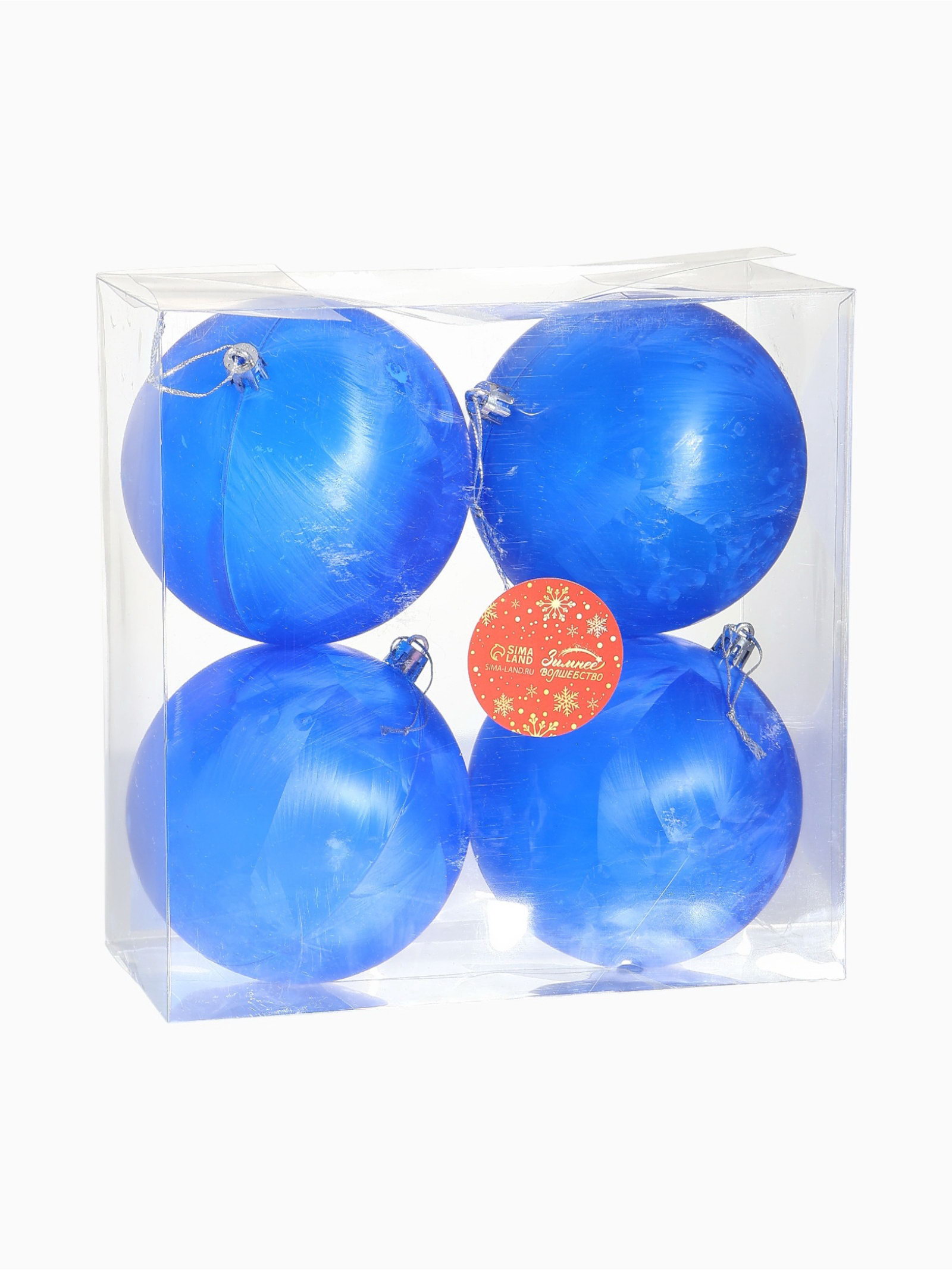 Ёлочные игрушки "Туман", шары новогодние, d=10 см, набор 4 шт., синий, 10x10 см., Зимнее волшебство, Китай