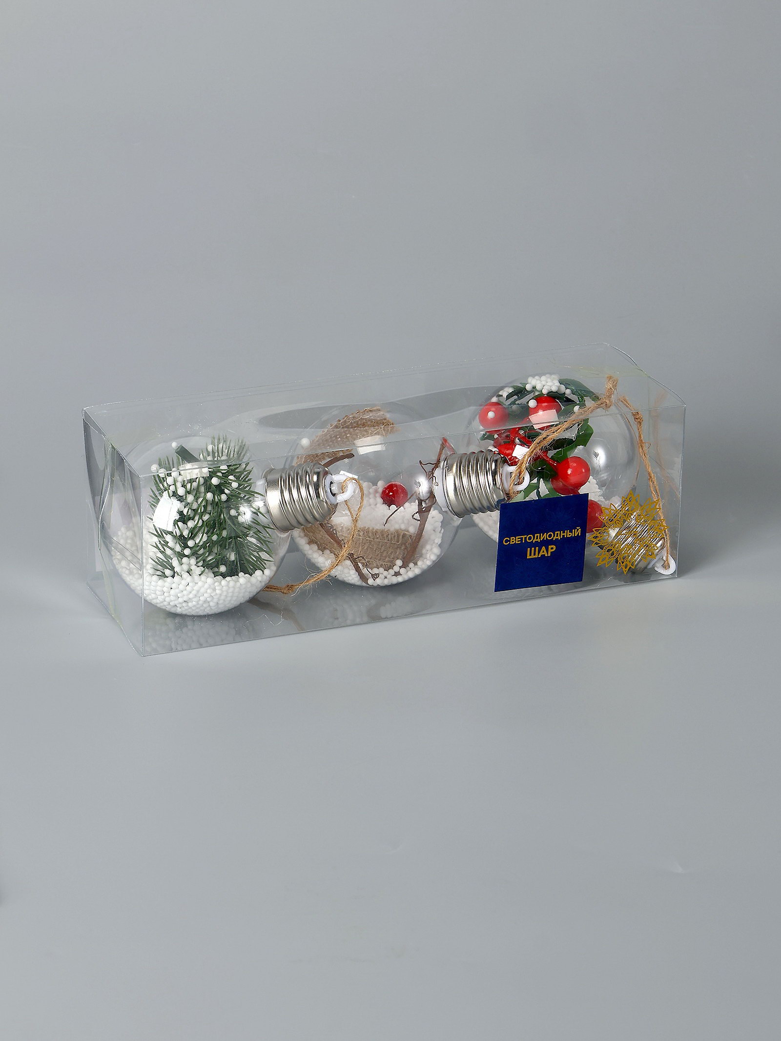 Набор ёлочных шаров "Зимний лес", 3 шт, d=8 см, 1 LED, от батареек, свечение тёплое белое, 8x8x8 см., Luazon Lighting, Китай